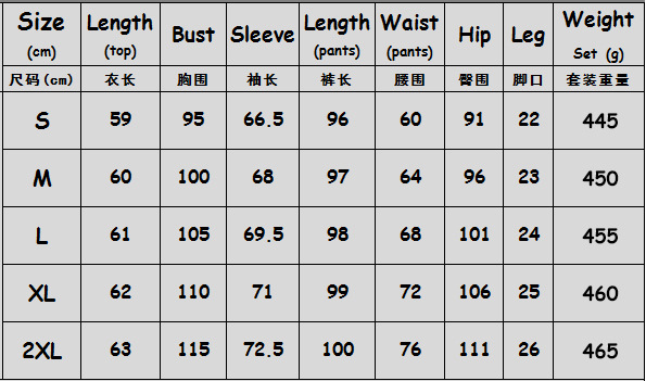 Size: S, M, L, XL, XXL Unit: cm