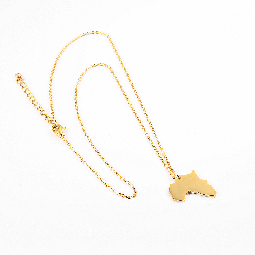 Style: Europe and AmericaMaterial: titanium steelTreatment process: electroplatingType: NecklaceModeling: Map of AfricaPackaging: Individually packedSize: see the picture below