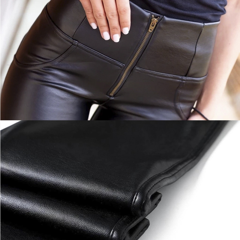 Color: Black leather pants high waist