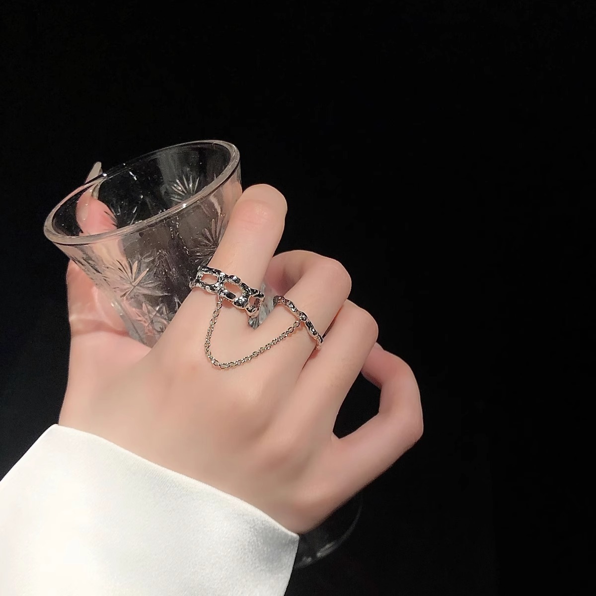 Product information:Color: JZ-309Applicable people: womenSize: adjustable openingStyle: texture chain double finger one-piece hollow high-grade design ring for womenMaterial: CopperPopular elements: round, polka dot, lineStyle: ins style
