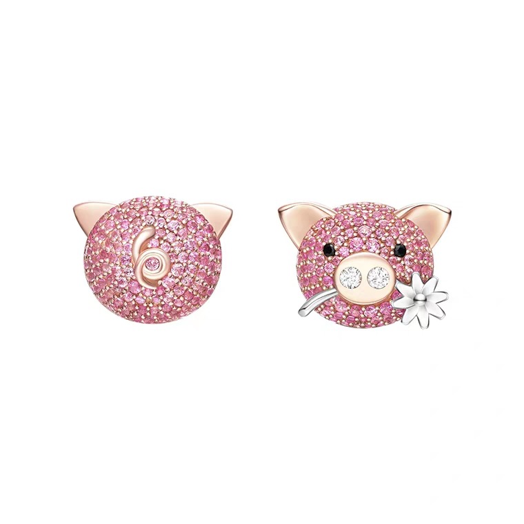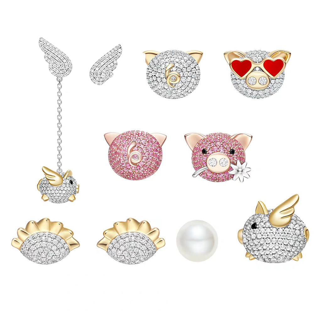 Flying Apsaras Pearl Piggy Ear Studs Female Silver Needle Earrings