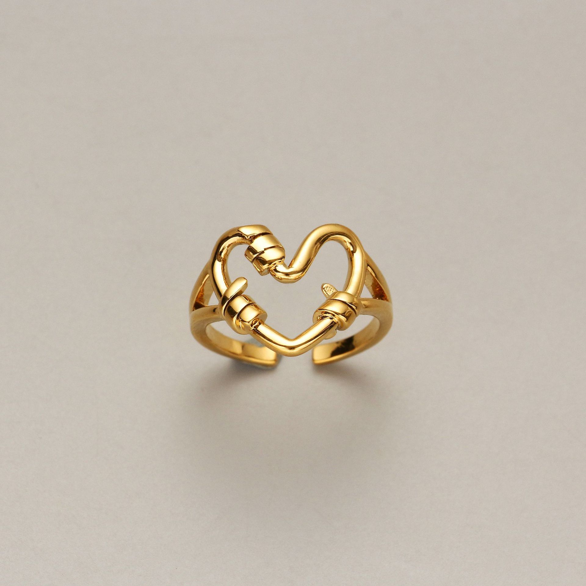 Style: European and AmericanShape: Heart shapeTreatment process: electroplatingStyle: Women'sColor: goldSize: Adjustable openingPackage:Copper ring X1