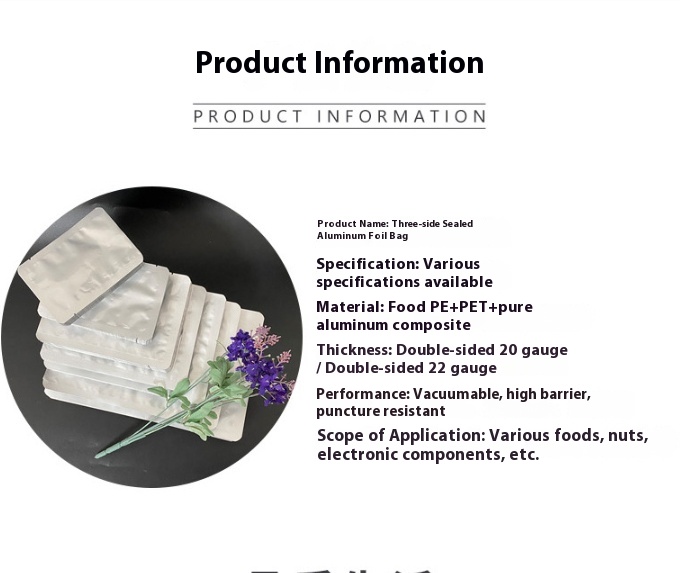 Product information:Material: aluminum foil film Purpose: avoid light and keep fresh Thickness: double-sided 20 Silk/double-sided 22 Silk