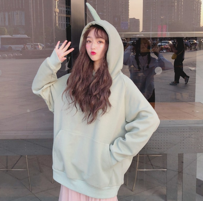 New autumn and winter women's Korean version of the loose hooded plus velvet thickening head pp home super fire sweater jacket