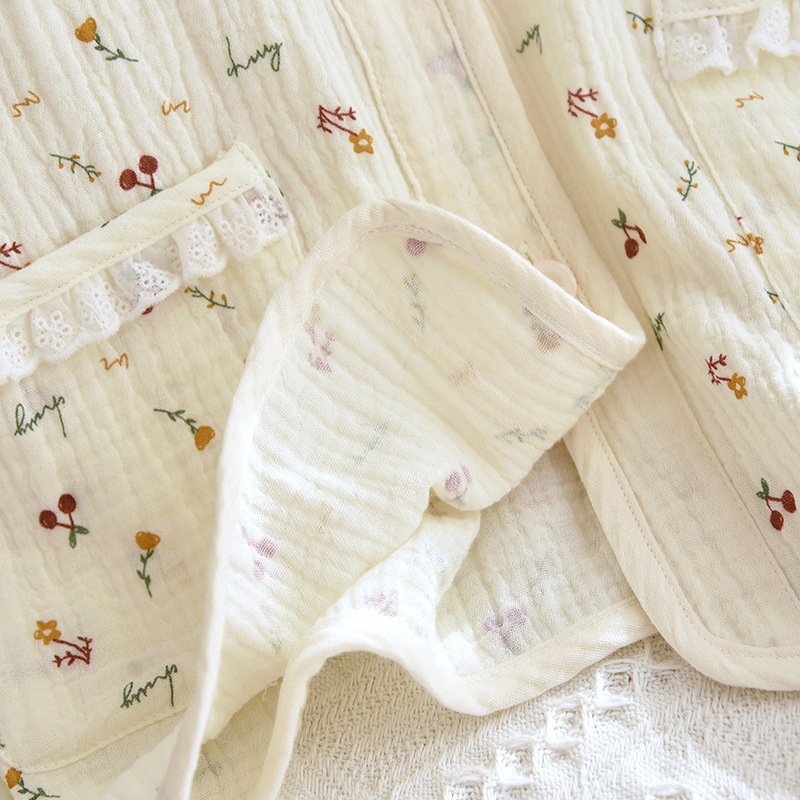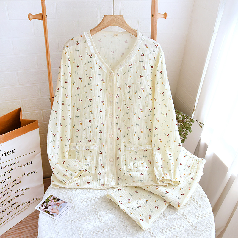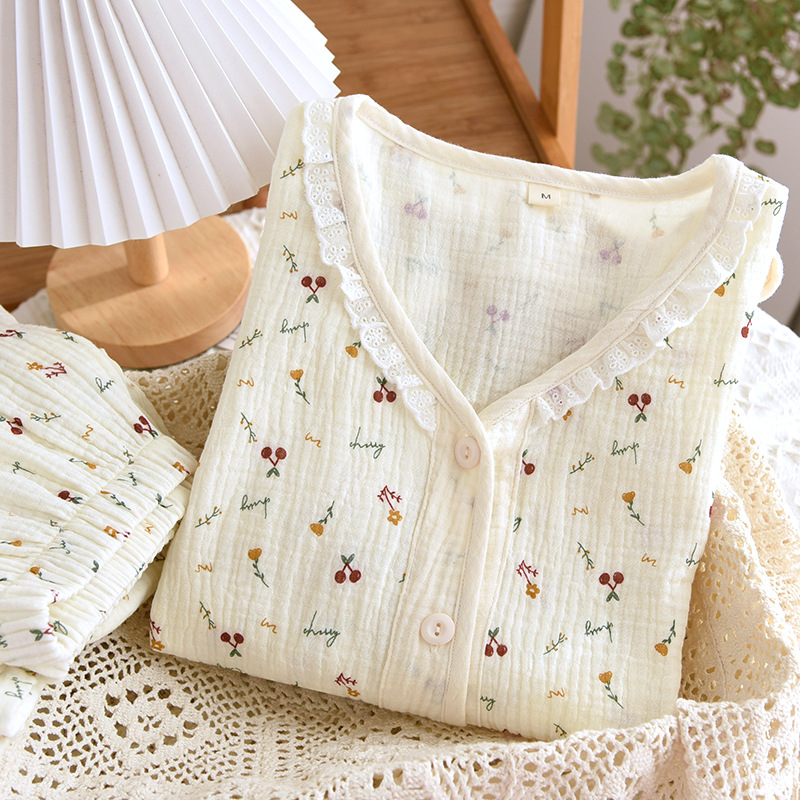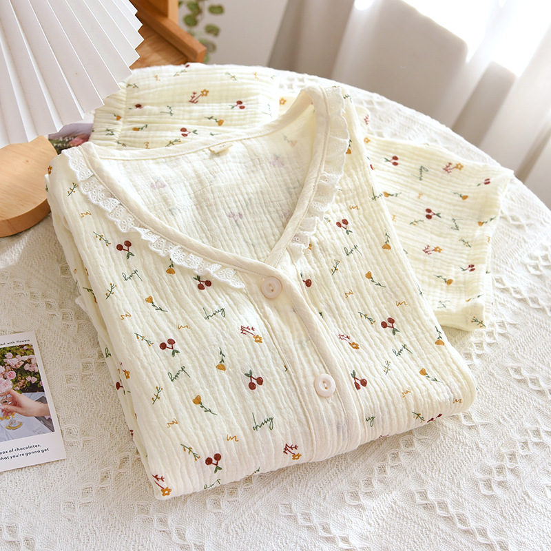 Color: crepe small cherry short long sleeve, crepe small cherry long sleeve, crepe green flower long sleeve, crepe green flower short sleeve, crepe green flower short sleeve
