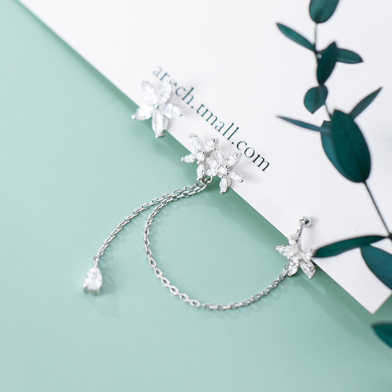 Asymmetric tassel water drop diamond earrings