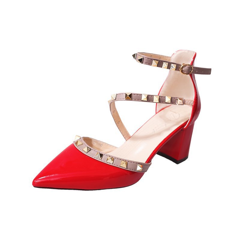 Europe and America rivet pointed head with thick with color matching women's shoes star small pepper with the same fashion
