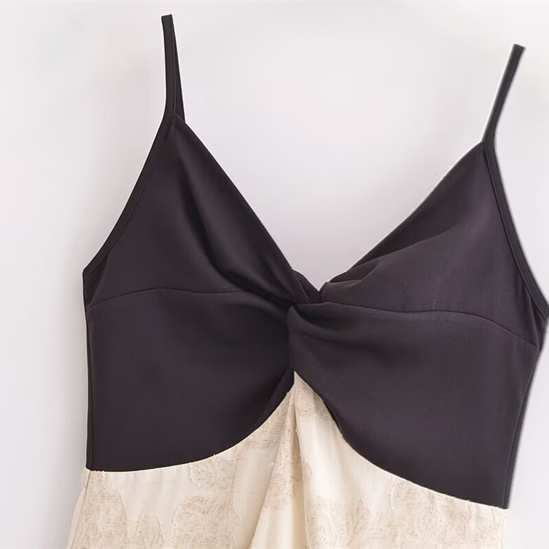 Patchwork Waist-slimming Jacquard Backless Suspender Dress