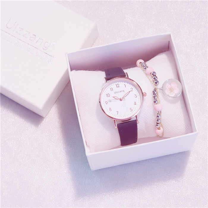 R: UL star luminous watch coffee belt + glass ball peach blossom