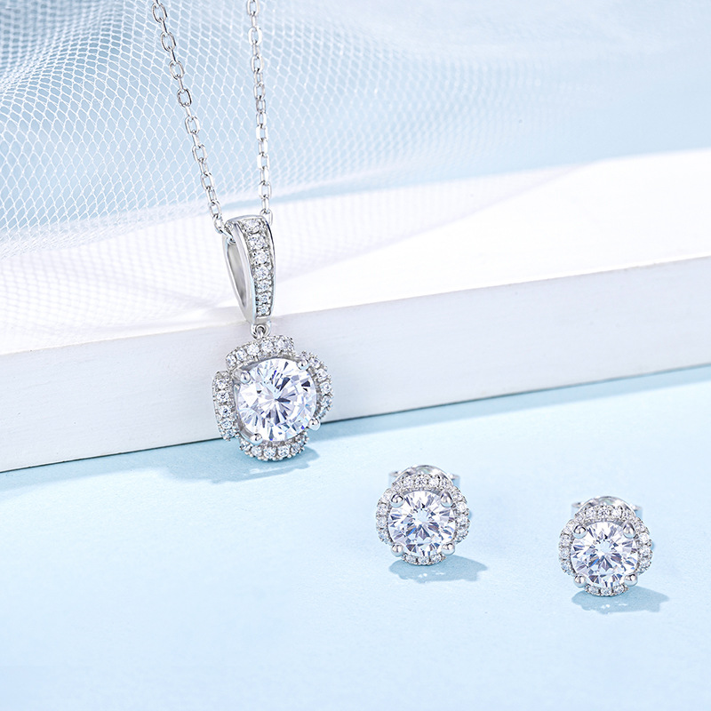 Color: 1ct Moissanite Pendant, 0.5ct Moissanite Stud Earrings
