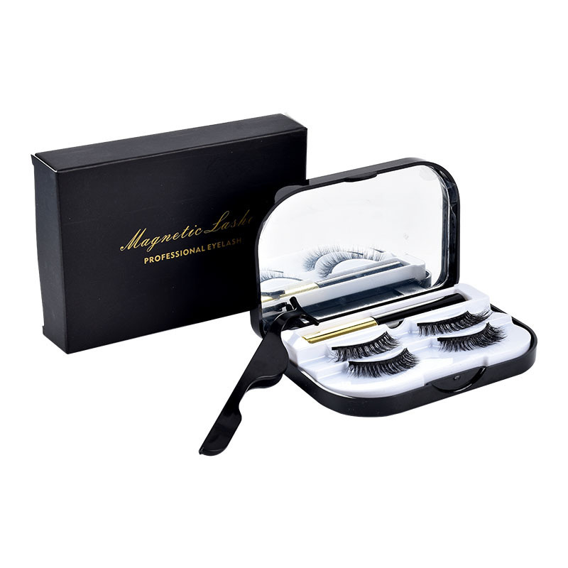 Product category: false eyelashesMaterial: man-made fiberProduction process: semi-manualItem No.: Two pairsSpecification: Two pairs of magnetic liquid eyeliner