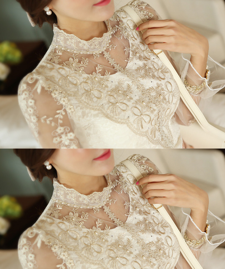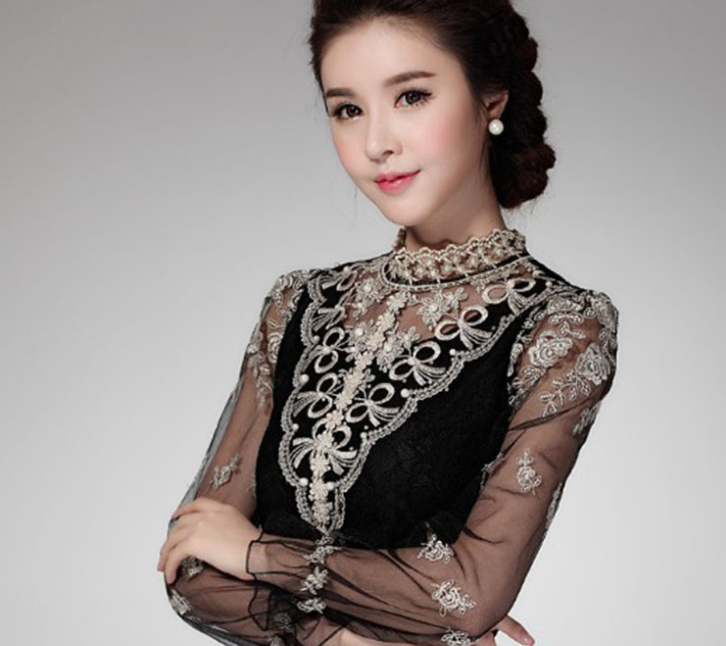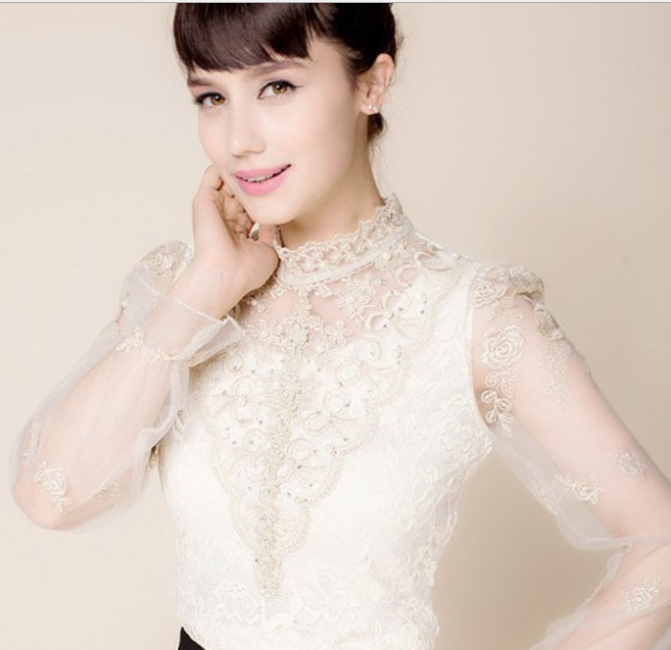 Mesh bottoming shirt women's long-sleeved lace new autumn stand collar blouse lace top Slim