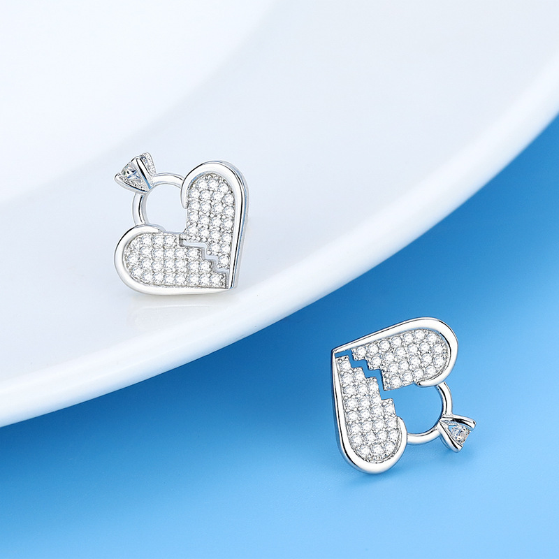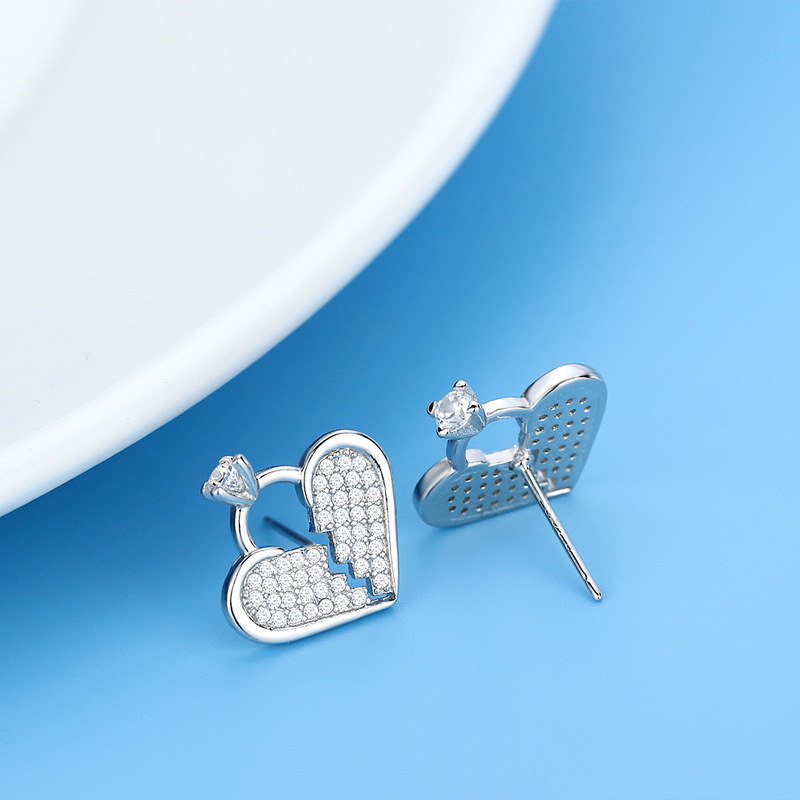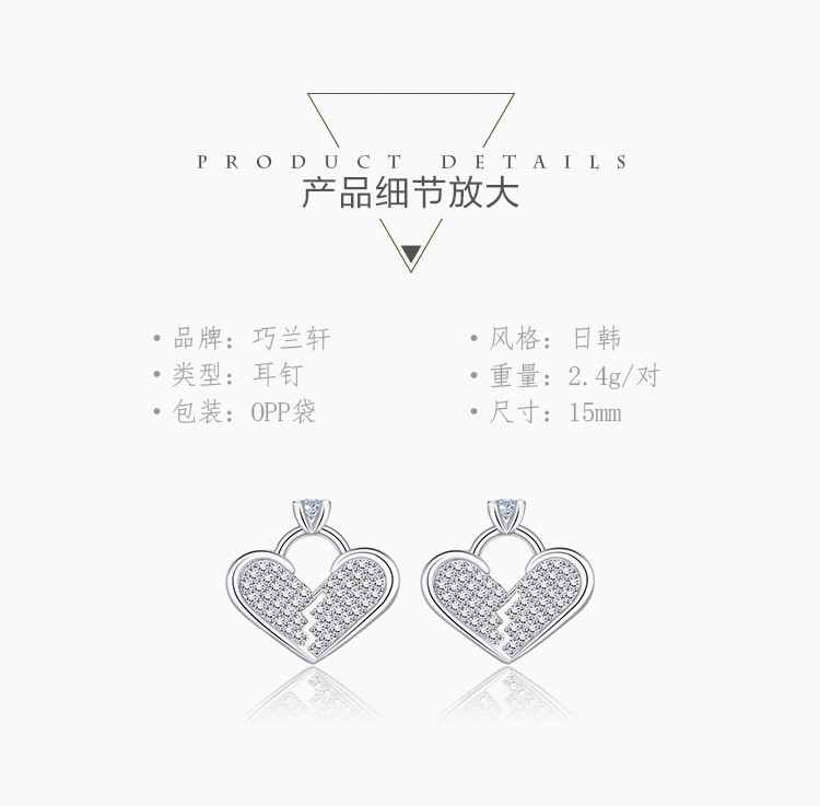 Product information:Treatment Process: Electroplating Color: full rhinestone zircon Heart-shaped stud earrings (white gold plated color retention) Applicable population: Female Material: Copper Shape: heart shape Size: 15mm