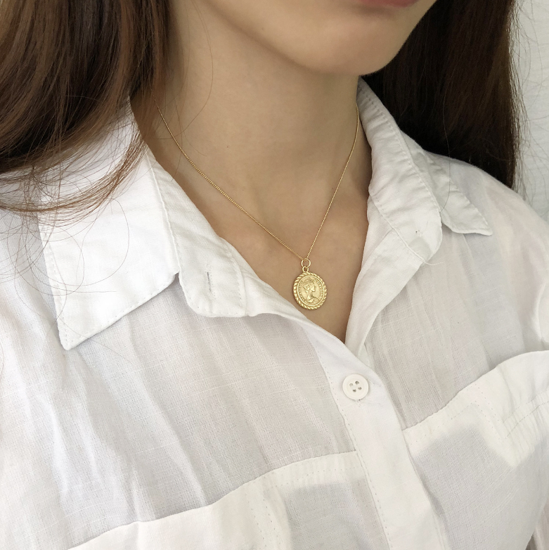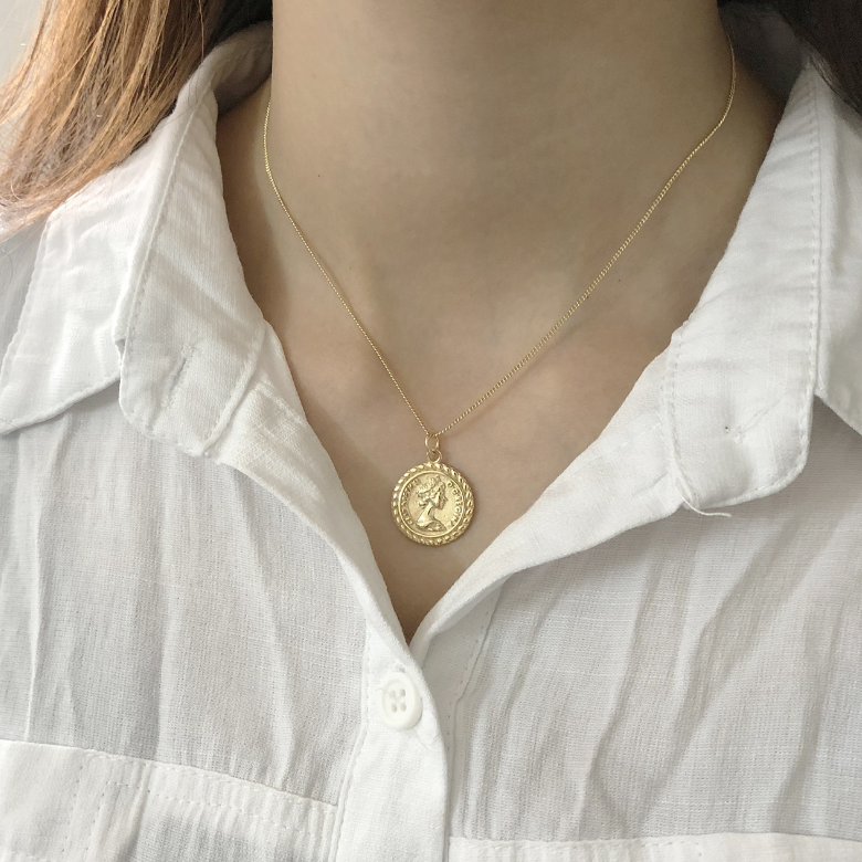 925 Sterling Silver Vintage Round Coin Pendant Necklace