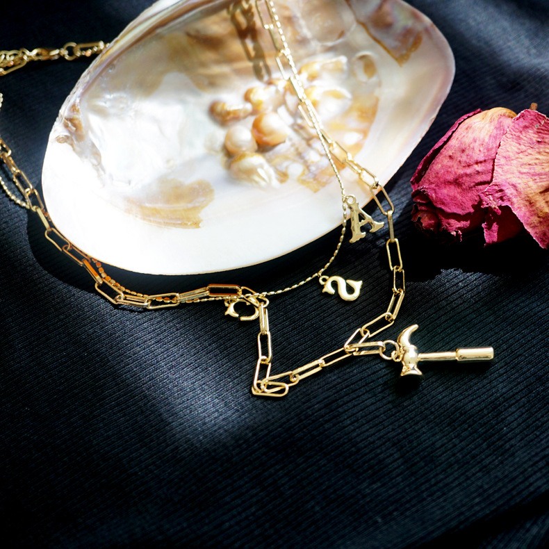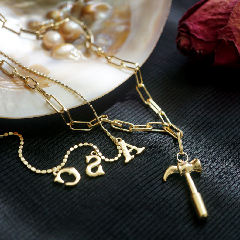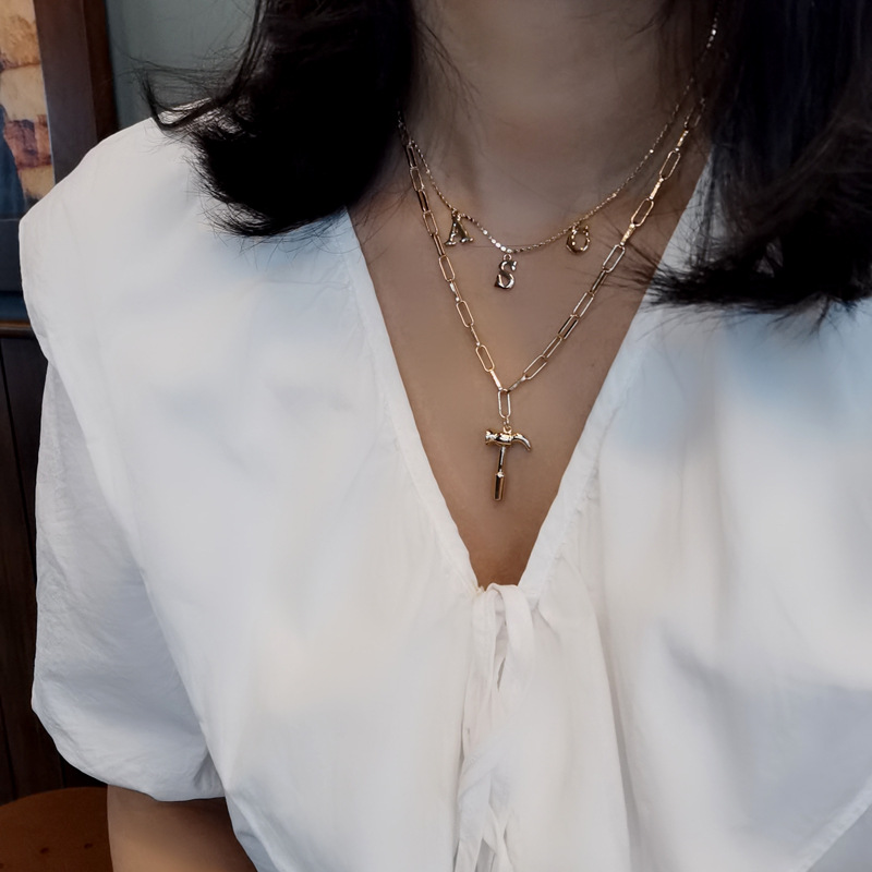 Stacked English Alphabet Small Hammer Necklace High Sense Of Luxury Light Luxury Clavicle Chain