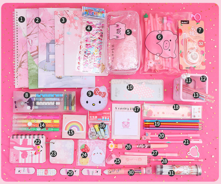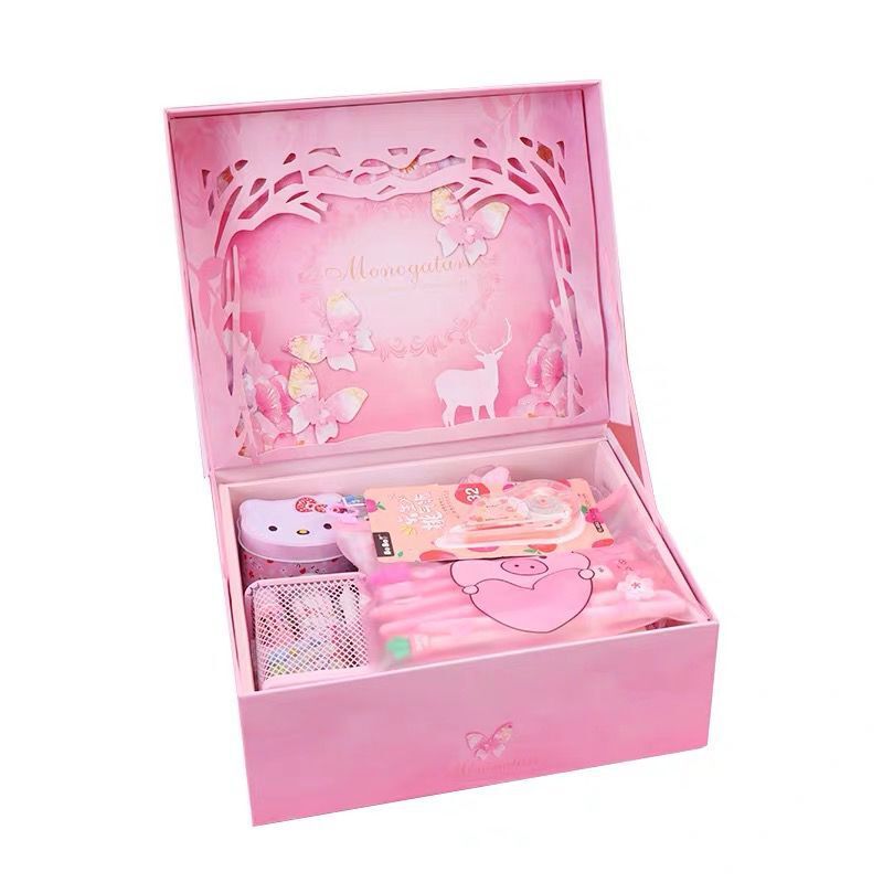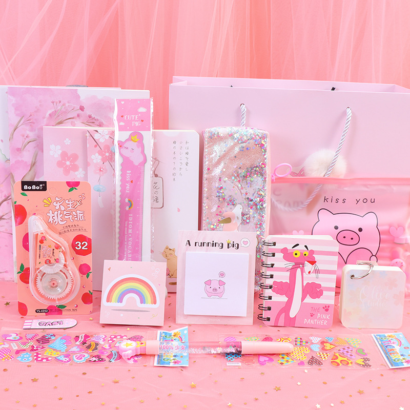 Components: pencil case, gel pen, correction tape, cartoon gift box, etc.