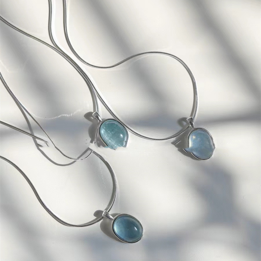 Product information:Color: Oval aquamarine necklace (white silver)Applicable people: WomenPendant material: Artificial crystalChain style: Snake bones chainMaterial: Artificial crystalShape: GeometricPopular elements: Ellipse