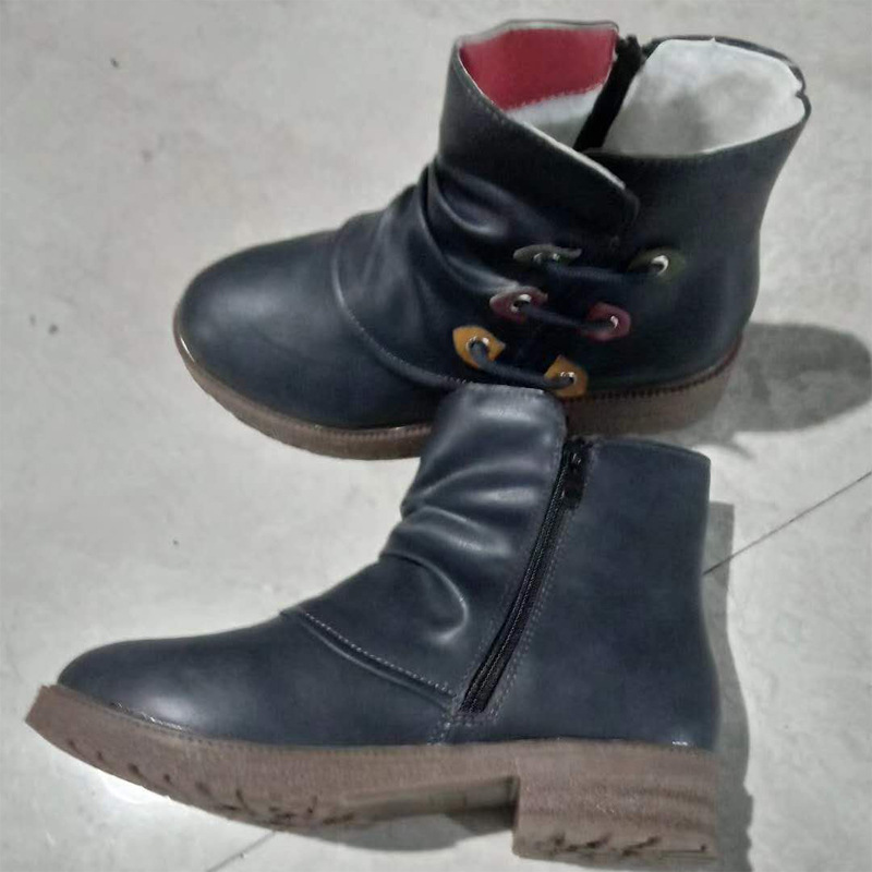 Upper Material: Artificial PUSole Material: RubberApplicable gender: femaleStyle: BritishToe shape: round headHeel shape: square heelHeel height: low heel (1-3CM)Popular boots: Martin boots