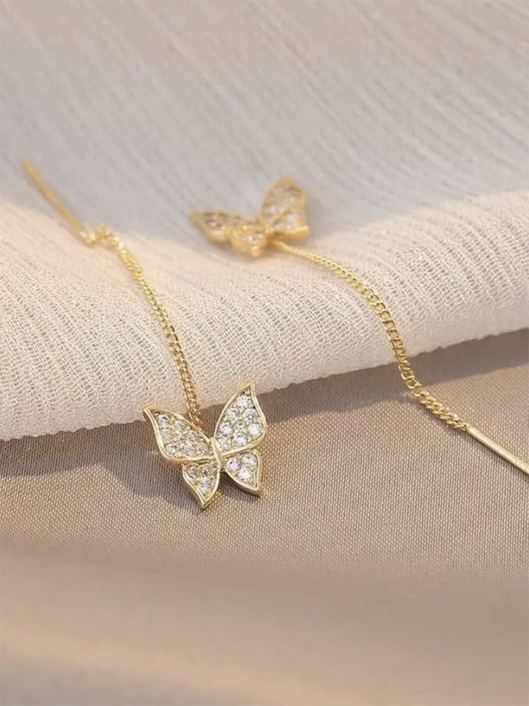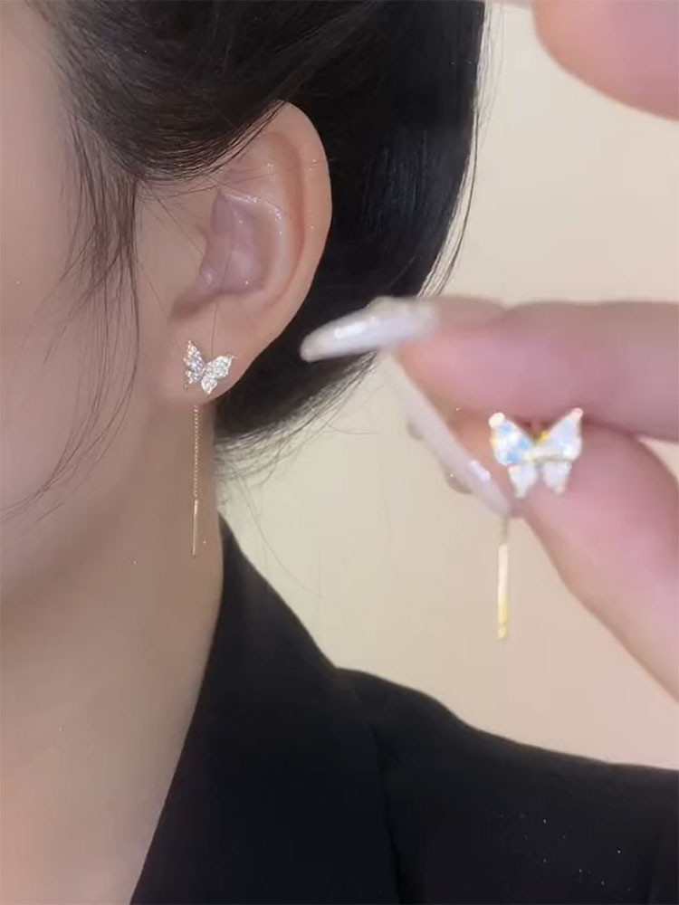 Material: alloyStyle: WomenShape: insectTreatment process: electroplatingInlaid material: alloy inlaid artificial gems/semi precious stonesColor: butterfly ear line