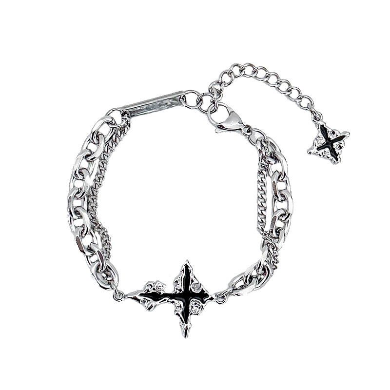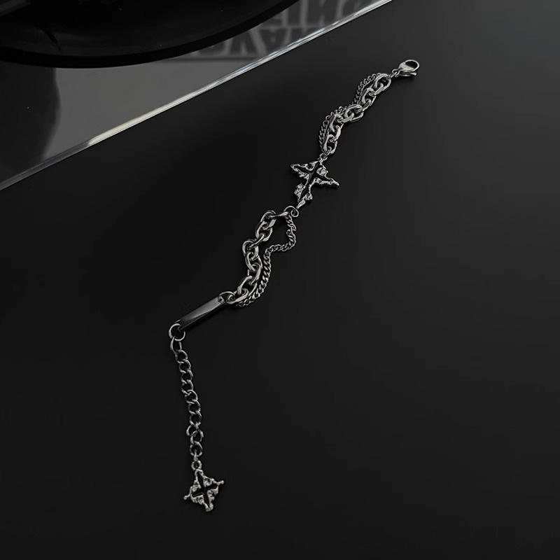Product information:Treatment Process: Electroplating Color: Double Black cross bracelet, double black cross necklace Style: Unisex Material: titanium steel Shape: Geometry