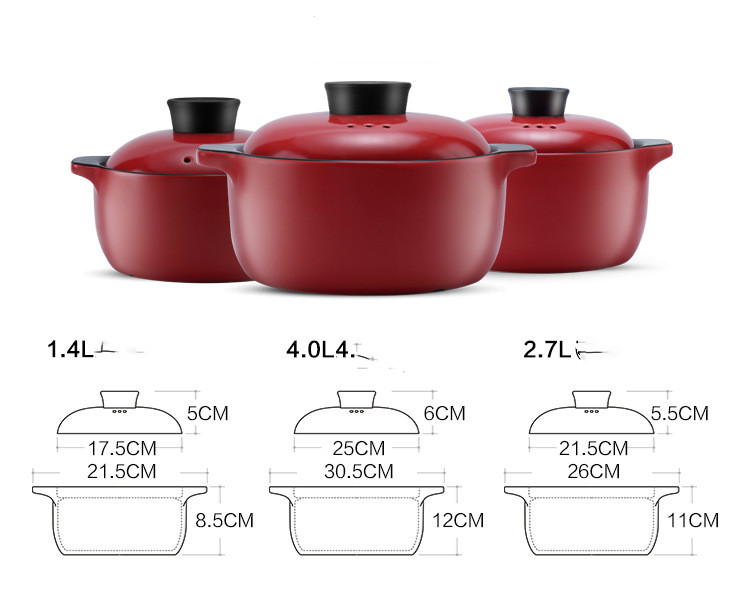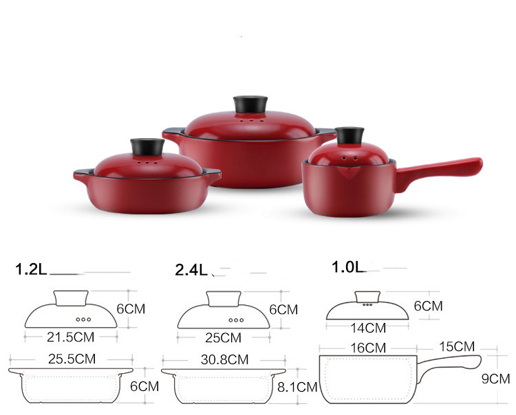 Specifications: A1.4L soup pot, B1.8L soup pot, C2.7L soup pot, D3.6L soup pot, E4L soup pot, F5.5L soup pot, G1.2L shallow pot, H2.4L shallow pot