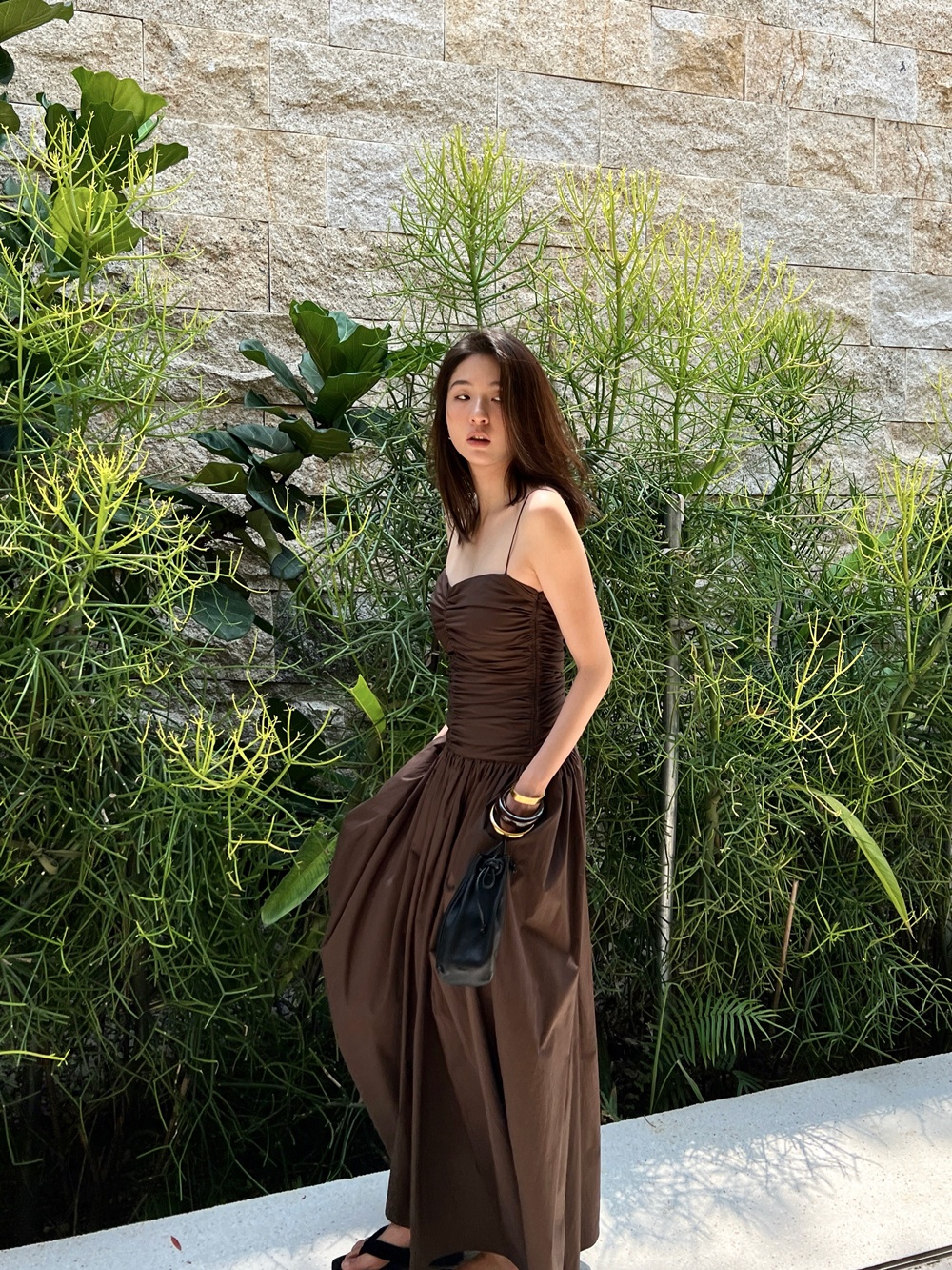 Style details: pleated splicing