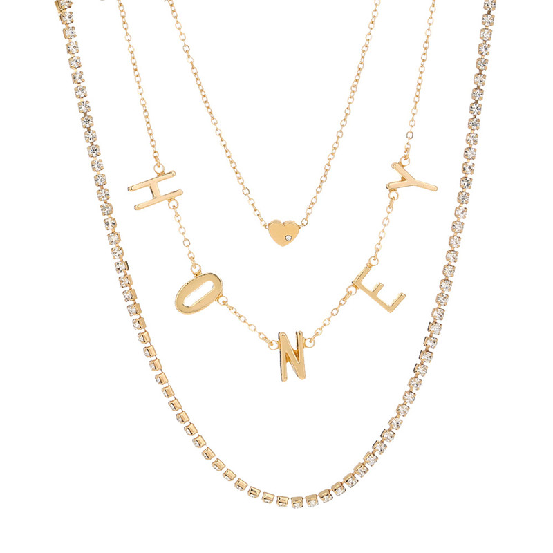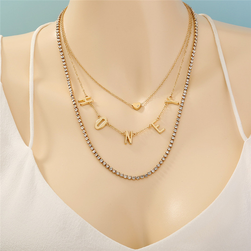 Shiny Rhinestone Honey Letter Tassel Multilayer Necklace
