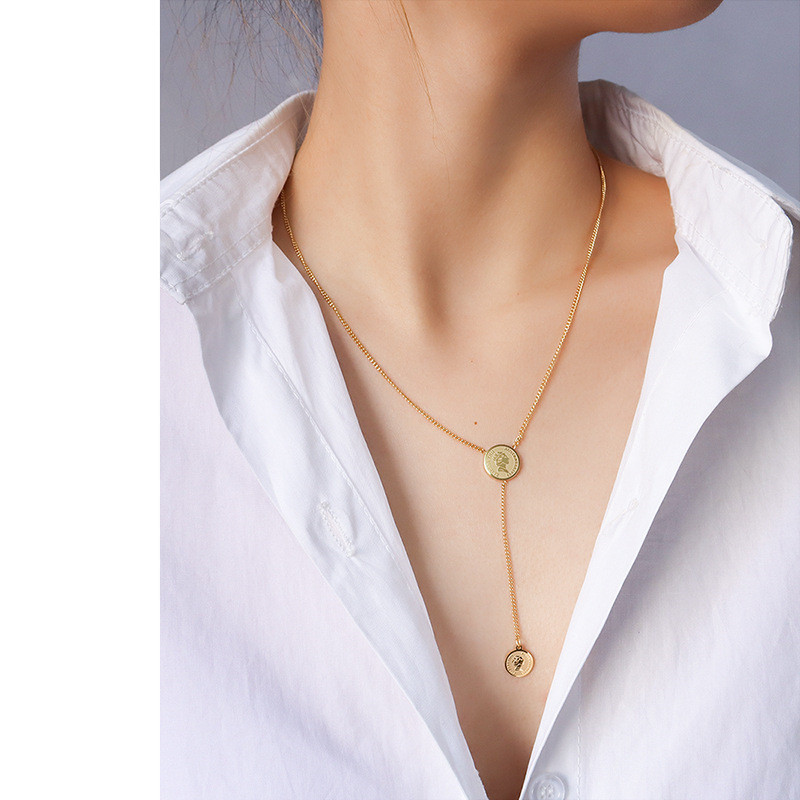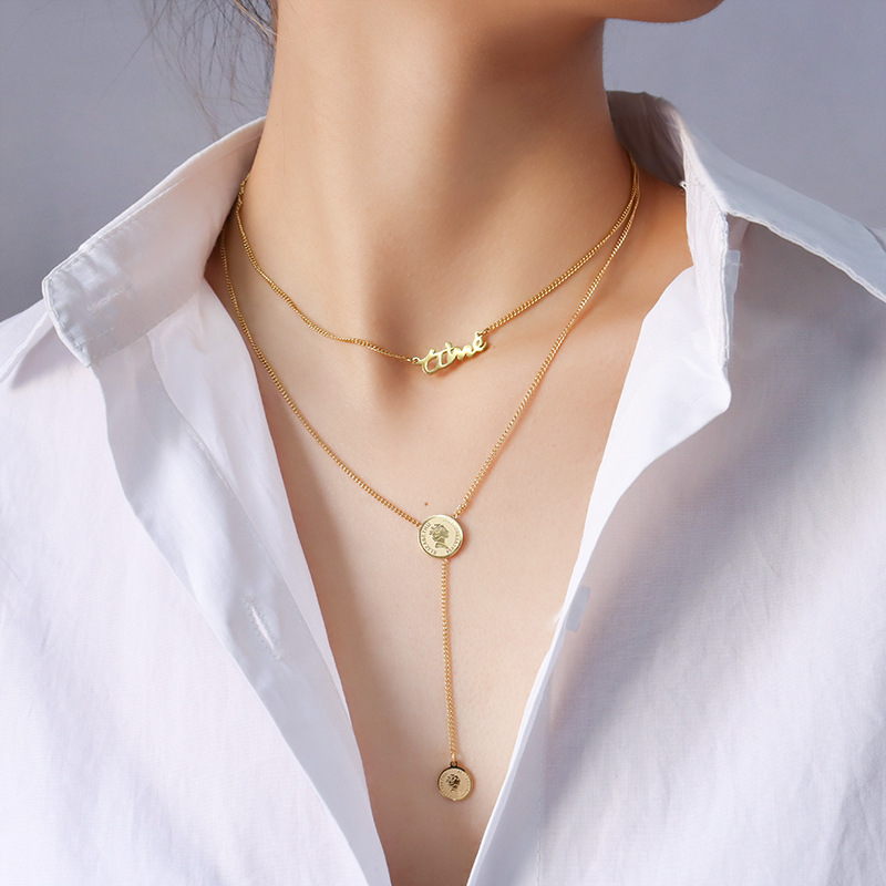 English Long Tassel Queen Portrait Medal Pendant Multi-layered Necklace