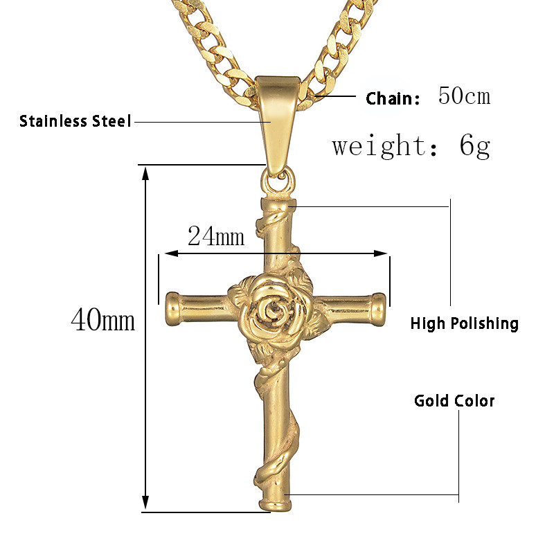 Style: European and AmericanMaterial: Stainless steelTreatment process: electroplatingType: NecklaceStyle: UnisexModeling: Cross