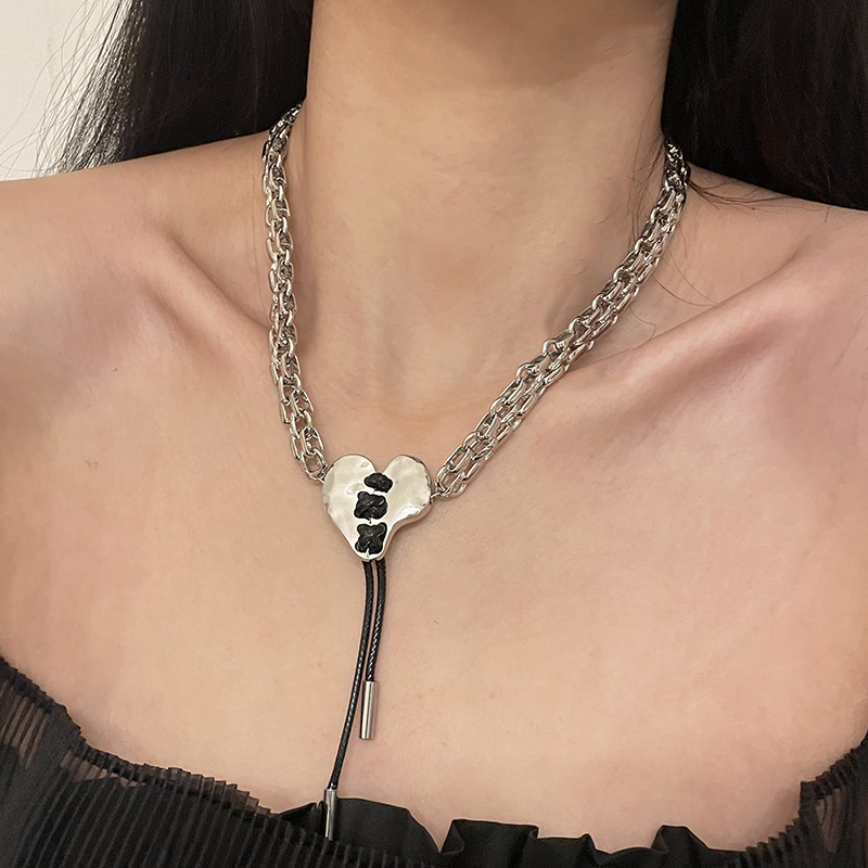 Product information:Color: love lace necklaceApplicable people: womenPendant material: AlloyChain style: clavicle chainMaterial: AlloyShape: heart shape,-1Popular elements: Love/heartStyle: cold wind