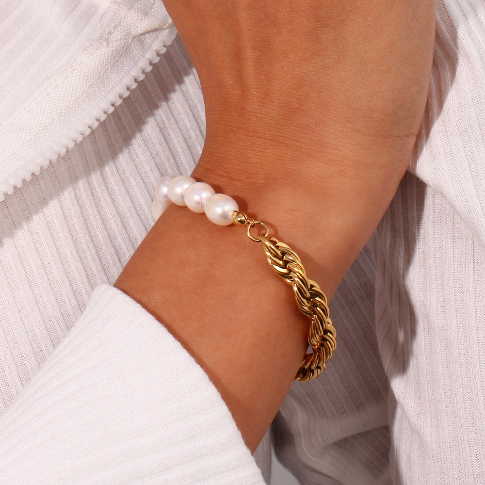 Color: thick hemp flowers chain Pearl stitching bracelet, thick hemp flowers chain Pearl stitching necklace