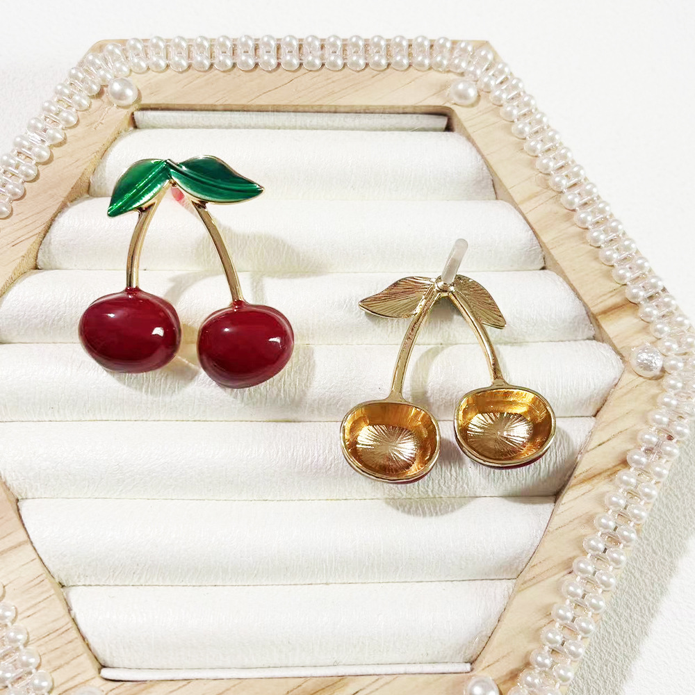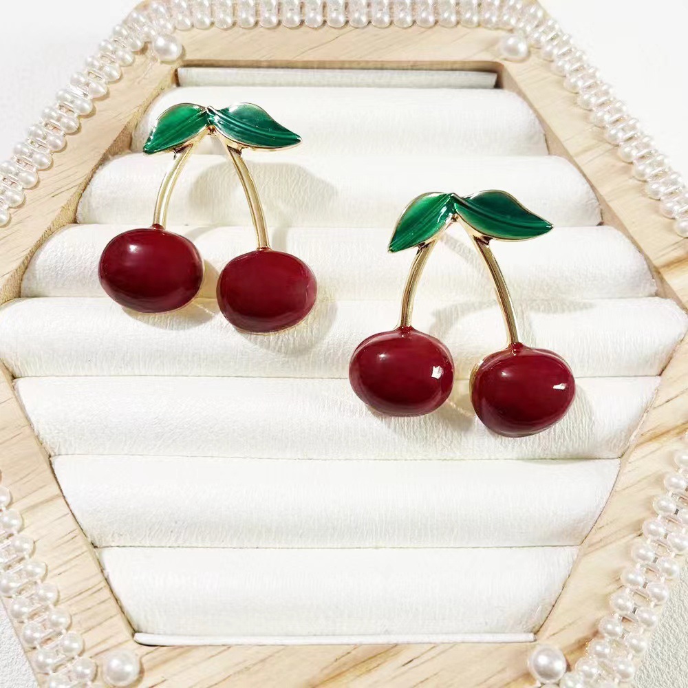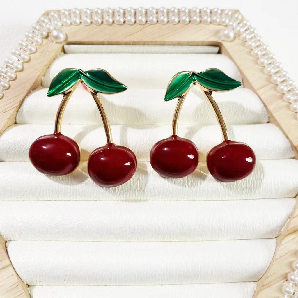 Product information:Color: Cherry-shaped earrings [color 1], Style 2, alloy blank Applicable population: Female Material: Metal Shape: fruit Popular elements: Cherry Style: Simple