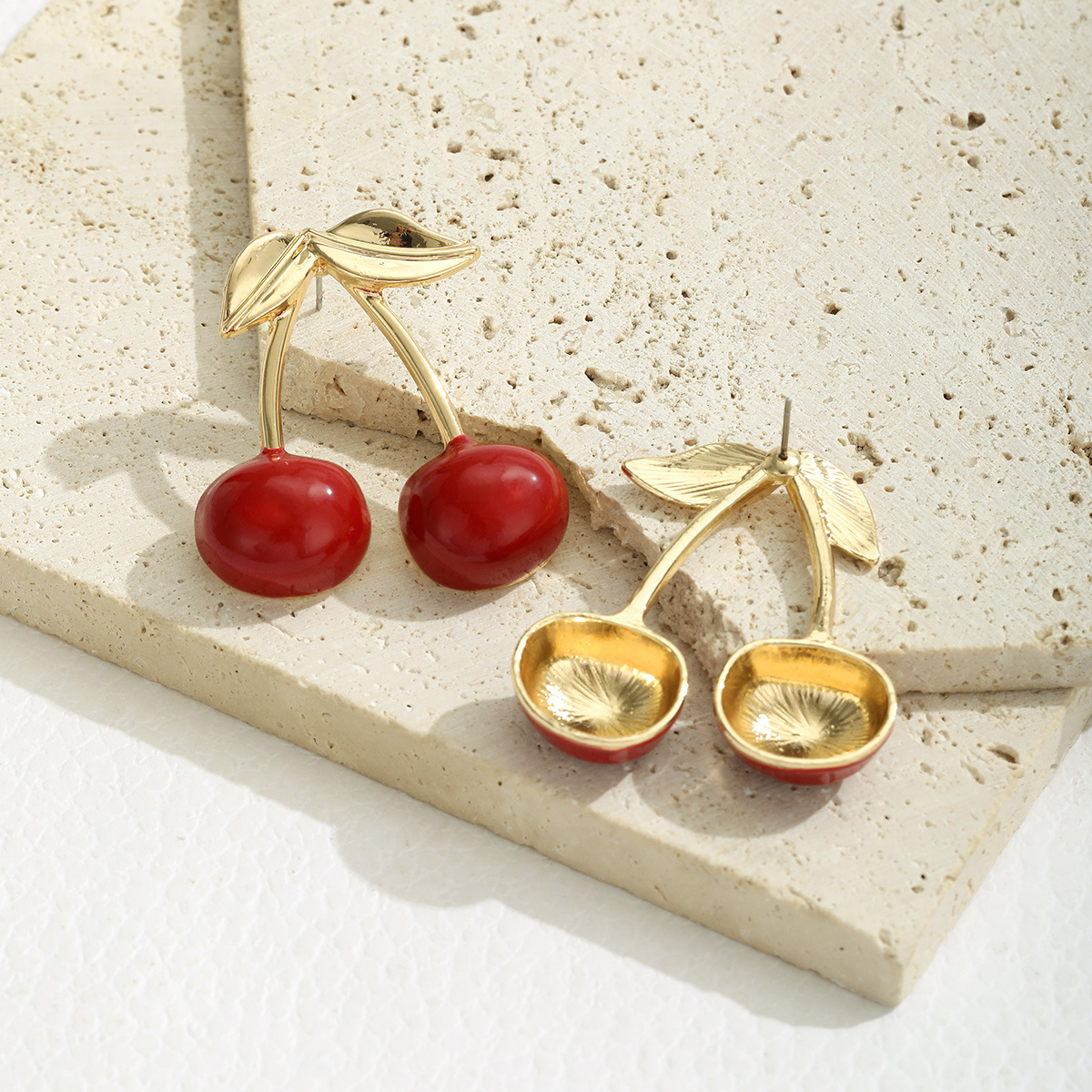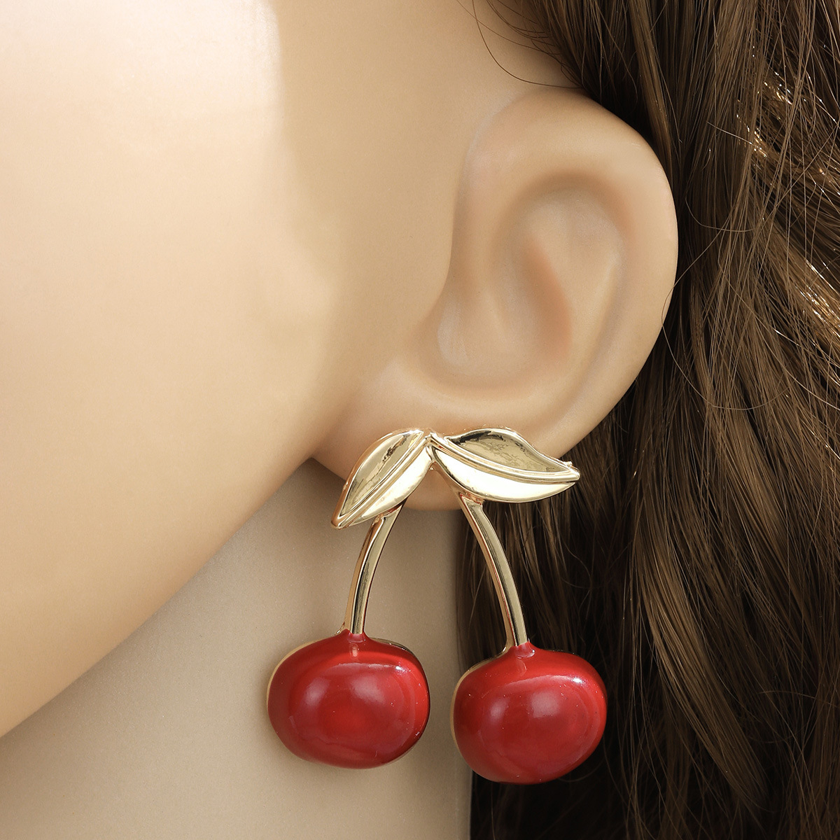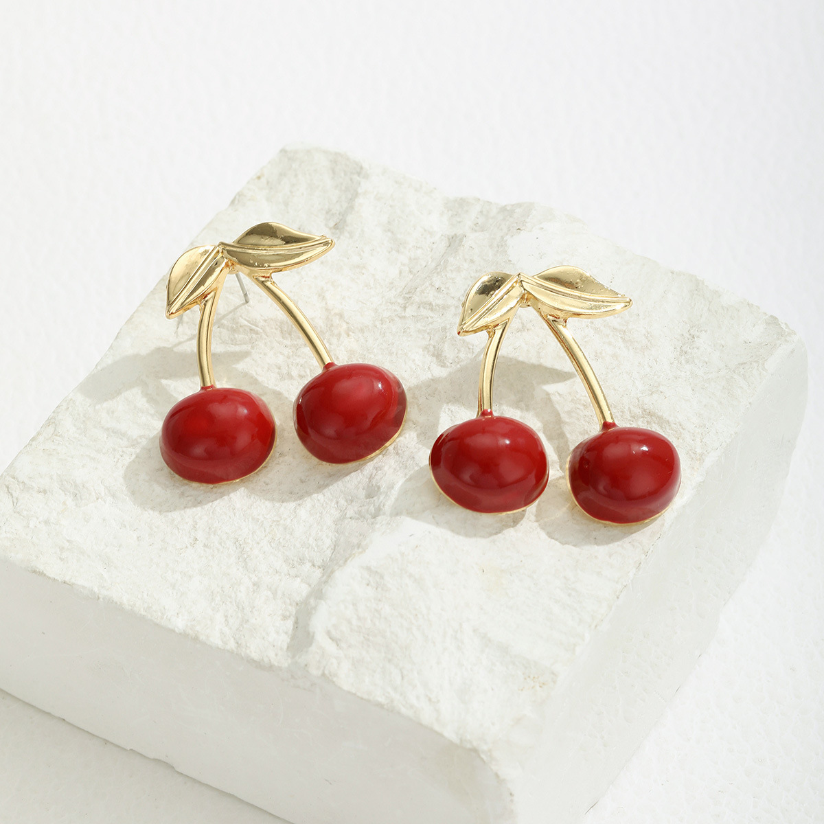 Product information:Color: Cherry-shaped earrings [color 1], Style 2, alloy blank Applicable population: Female Material: Metal Shape: fruit Popular elements: Cherry Style: Simple