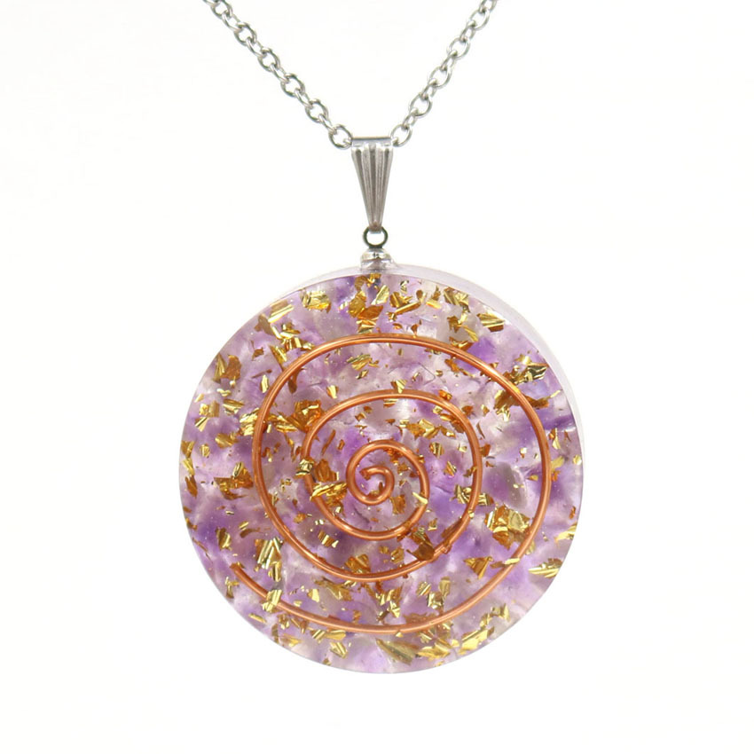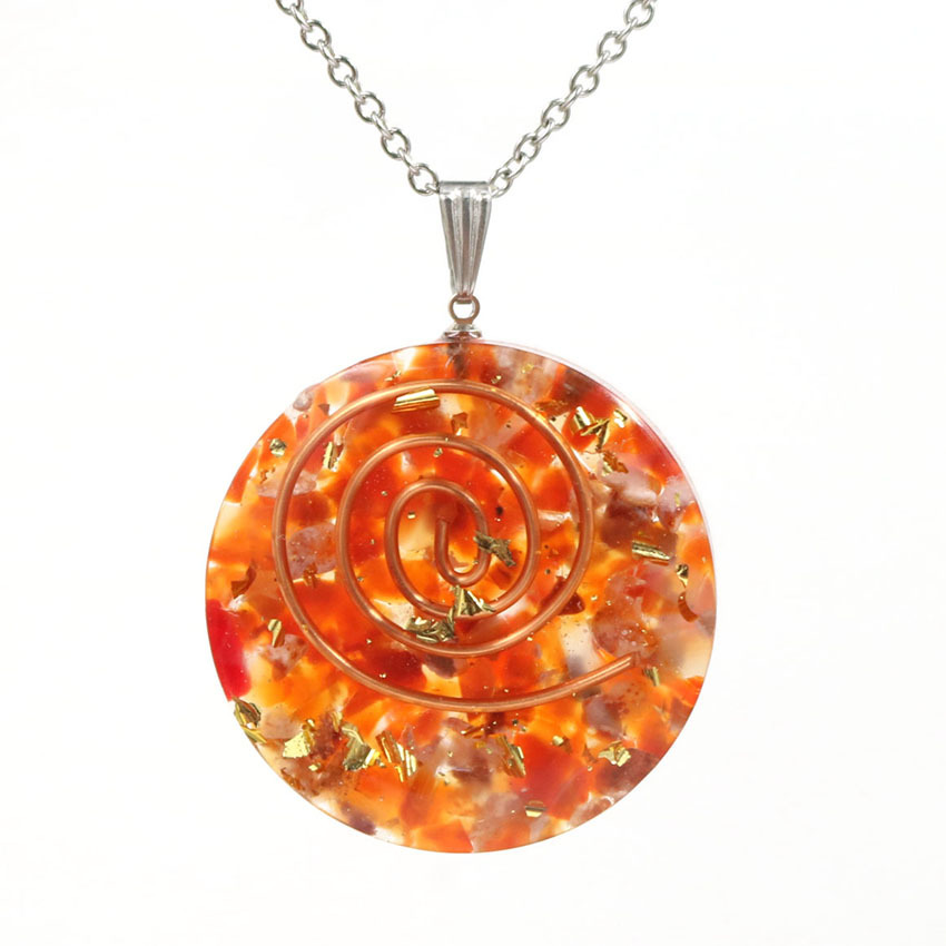 [Name]: Natural crystal crushed stone l round chakra pendant necklace