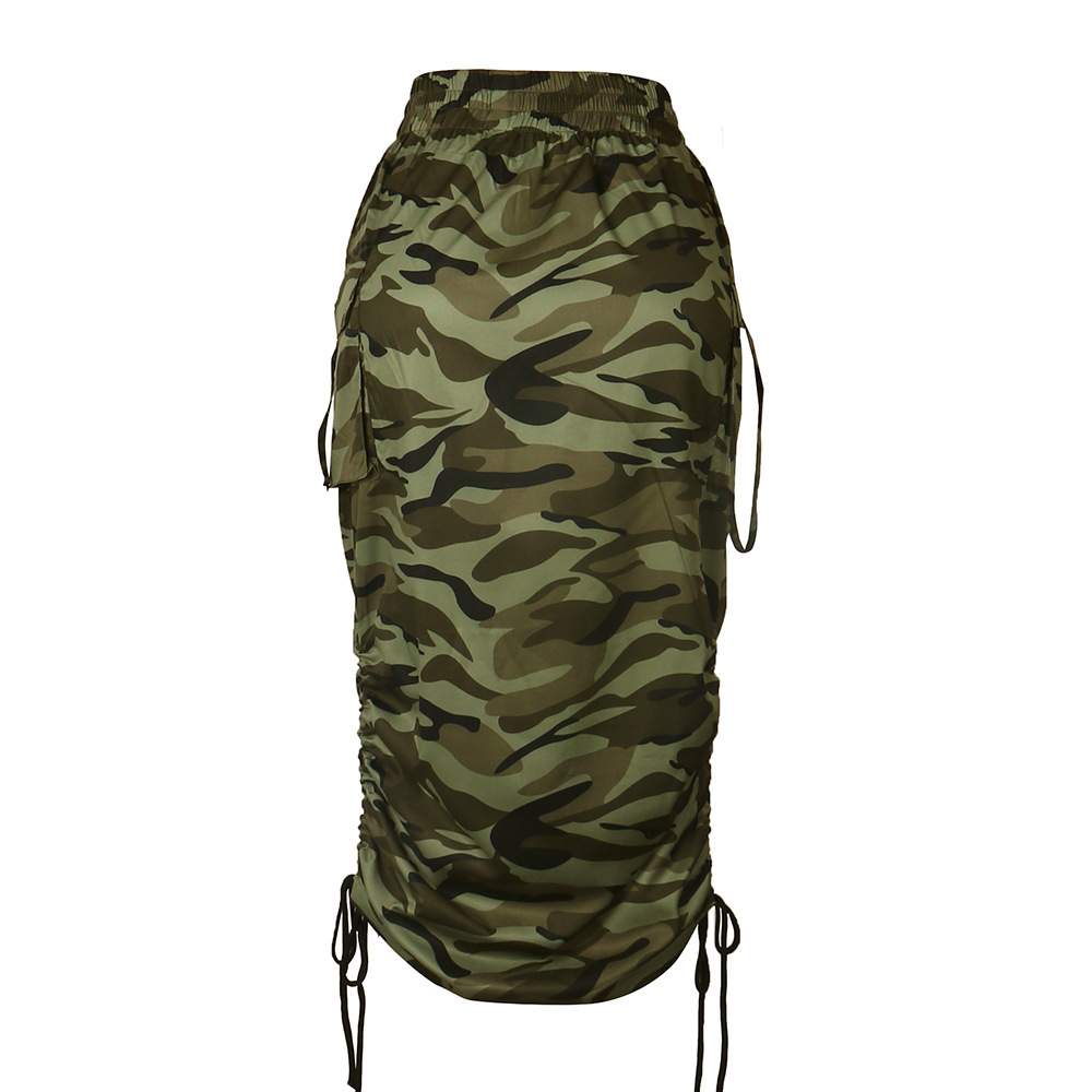 Popular elements: Europe and America strap pocket slim hip skirt bottom skirt