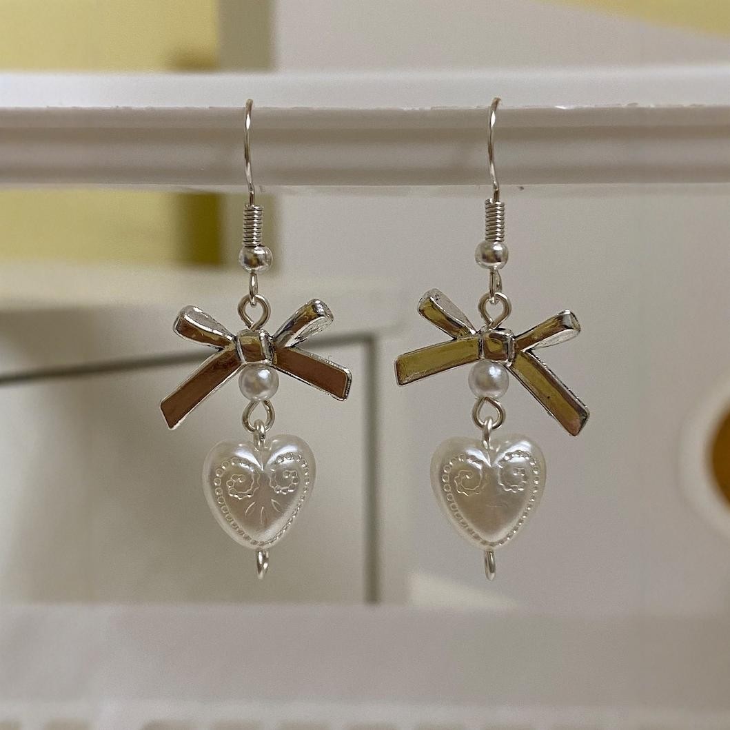 Product information:Processing process: manualColor: Hollow love style, Pearl love styleMaterial: MetalShape: BowPopular elements: BowStyle: sweet and cool