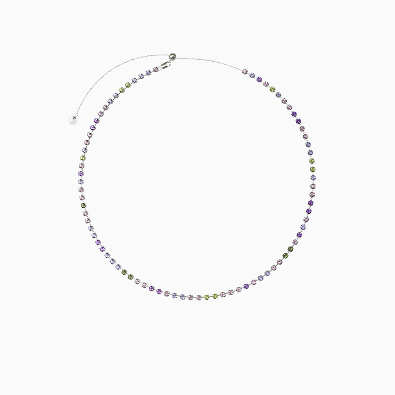 Chain material: brass platingStyle: original designCondition: NewApplicable gender: femaleColor classification: color zircon necklace chainStyle: round bead chainExtension chain: 10cm or lessMosaic material: not inlaid