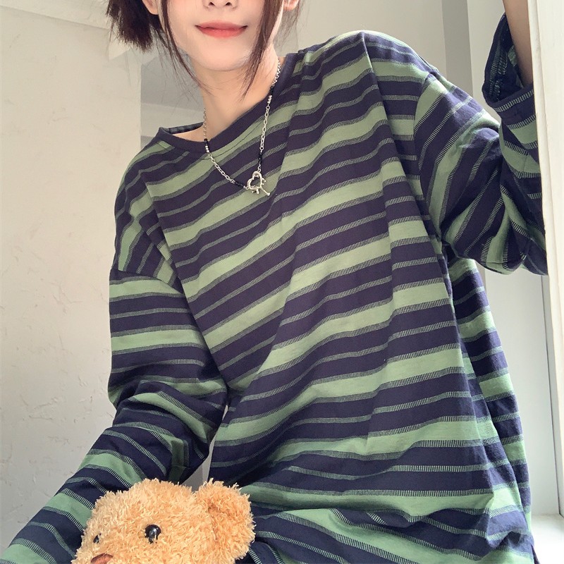 Product information:Size: M, L, XL, 2XL Style: commuting Collar type: round neck Main color: black and white stripes, black green stripe, khaki stripe Sleeve length: long sleeve