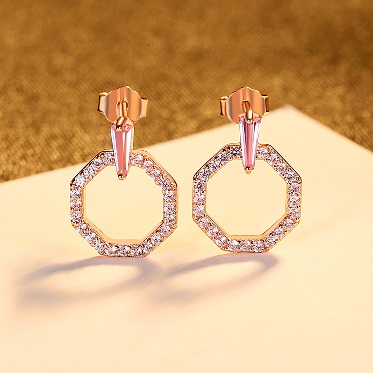 Pure Silver Earrings Women'S Korean Version Micro Inlaid Powder Zirconium Earrings Rose Gold Plating