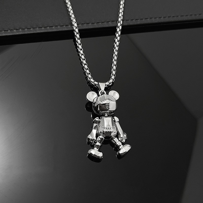 Product information:Color: movable bear-titanium steel necklace 60cm, movable bear-titanium steel necklace 70cm Pendant material: Alloy Chain style: Pearl Chain Popular elements: Bear Style: Hip hop