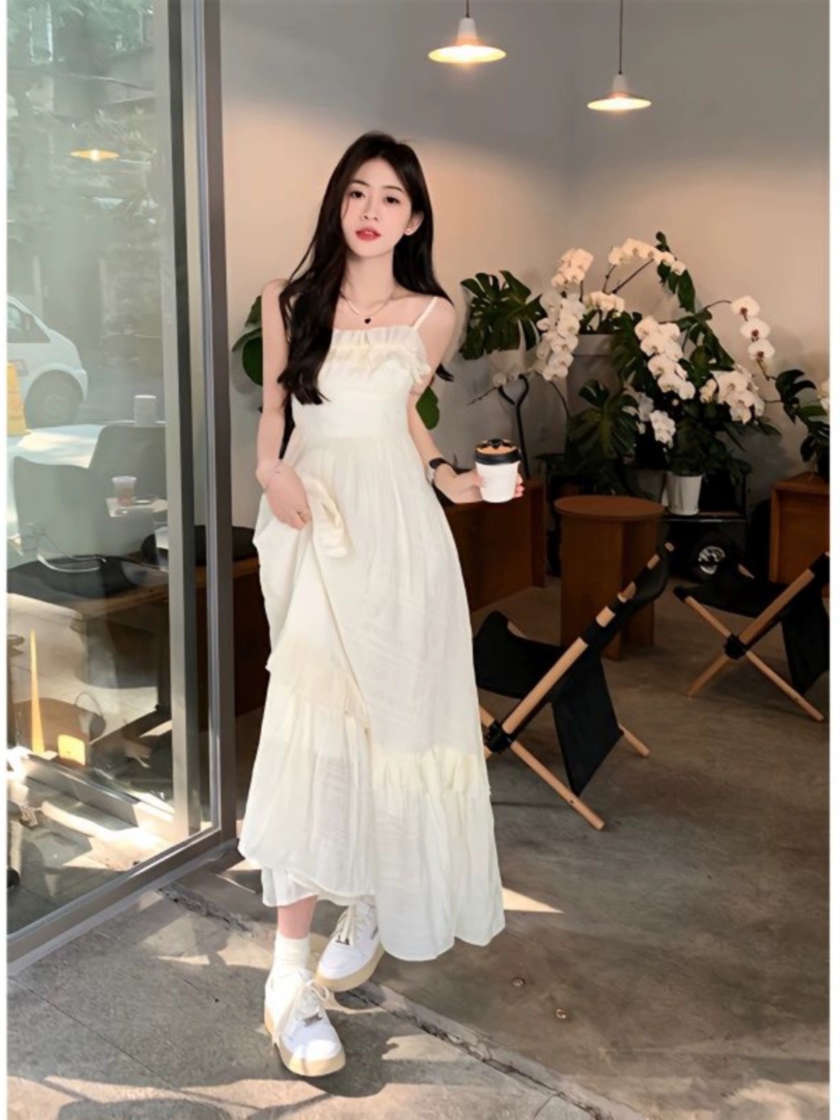 Product information: Pattern: solid color Color: Beige Size: S,M,L,XL,2XL Fabric name: chiffon Main fabric composition: Polyester Fiber