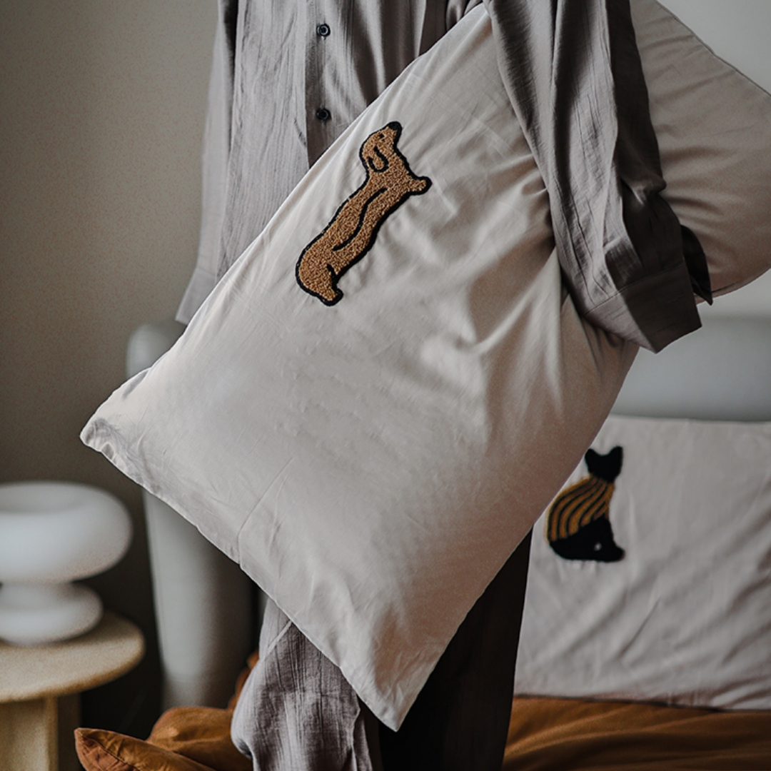 Color classification: Milk coffee puppy - Single person pillowcase Milk coffee kitten - Single person pillowcase cat dog both - Double person pillowcase