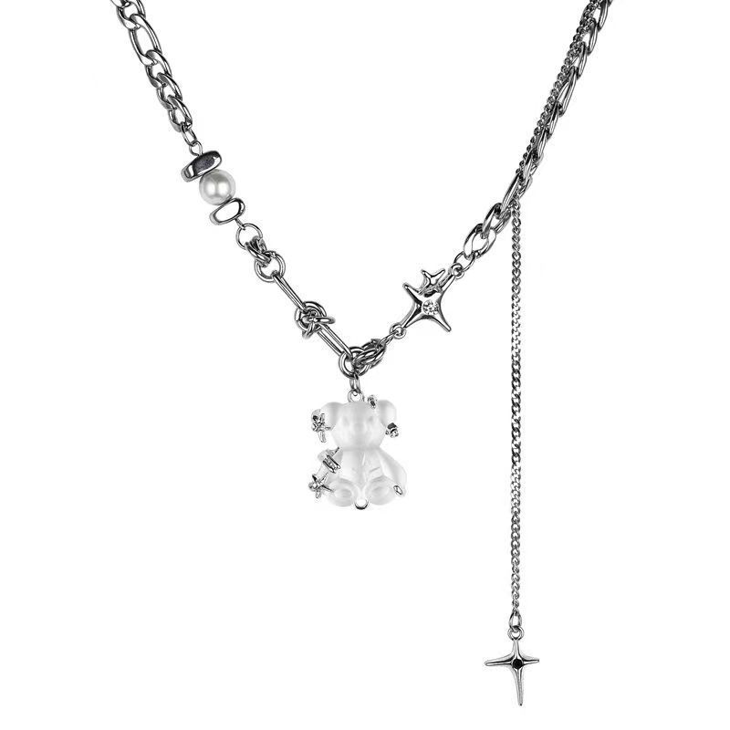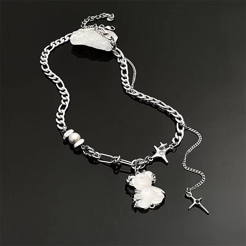 Product information:Treatment Process: ElectroplatingColor: as main imageApplicable people: UnisexChain style: snake bones chainMaterial: titanium steelPopular elements: Bear