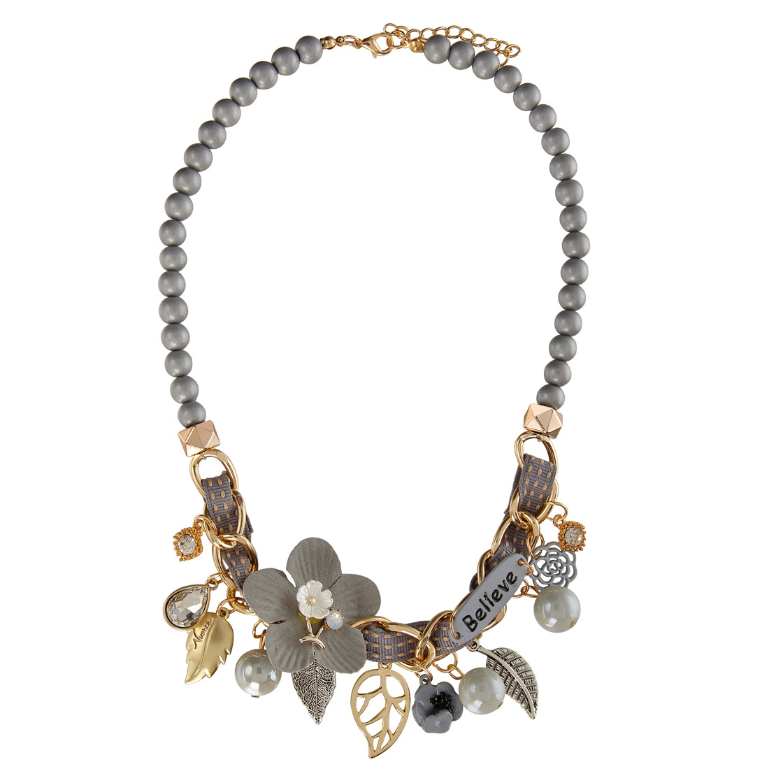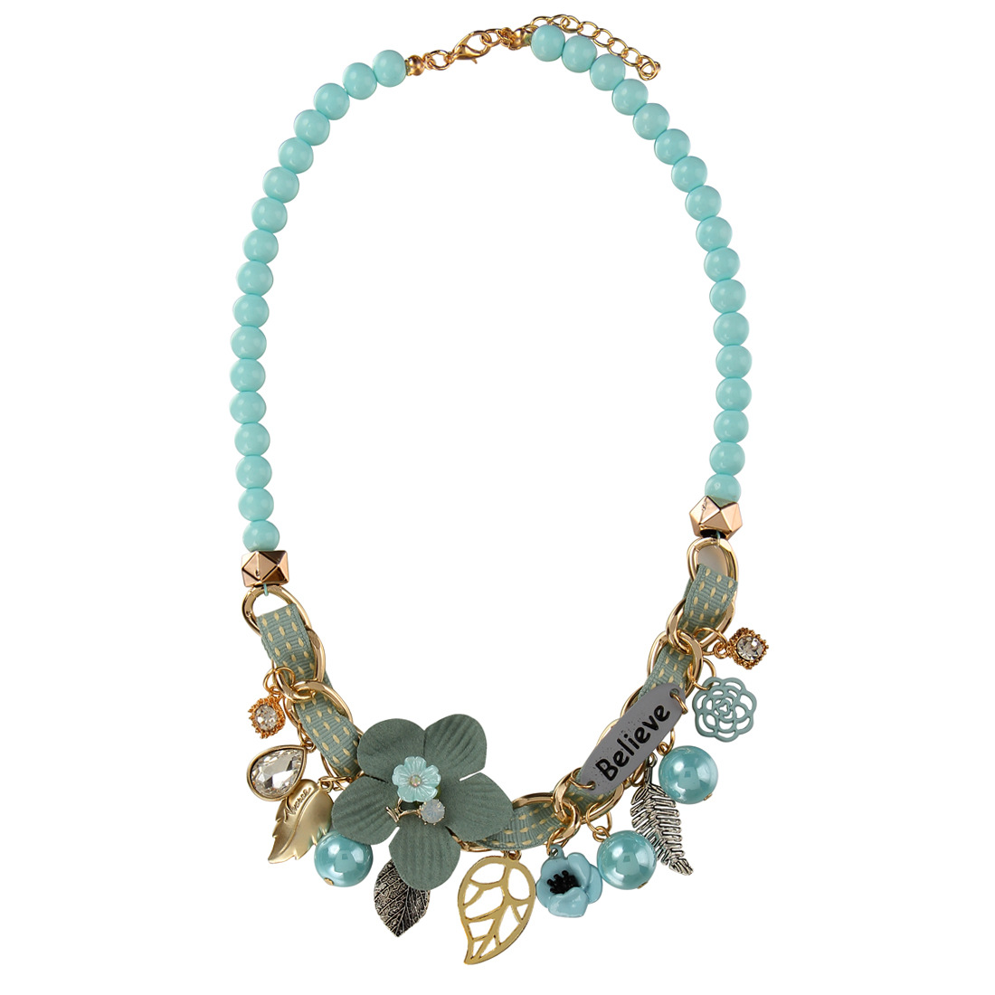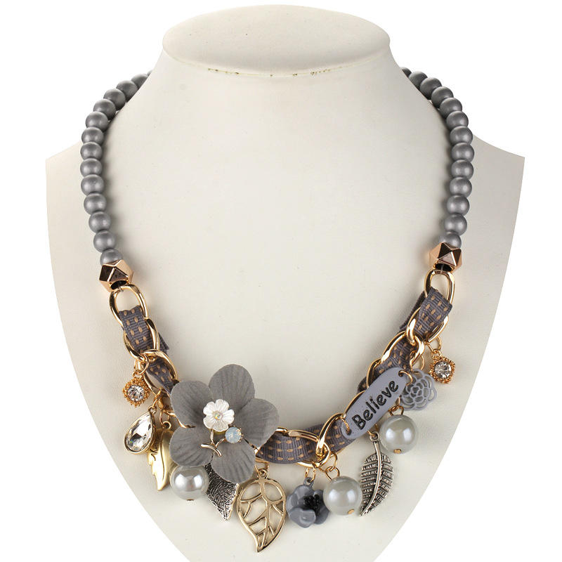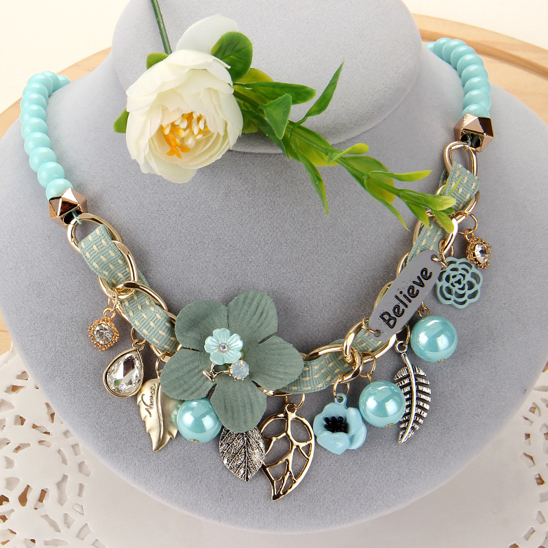 Material: glass imitation pearl, rhinestone, alloy charm, petal non-woven fabric.