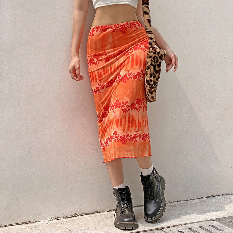 Popular elements of long skirts: floral, printed, contrasting colors