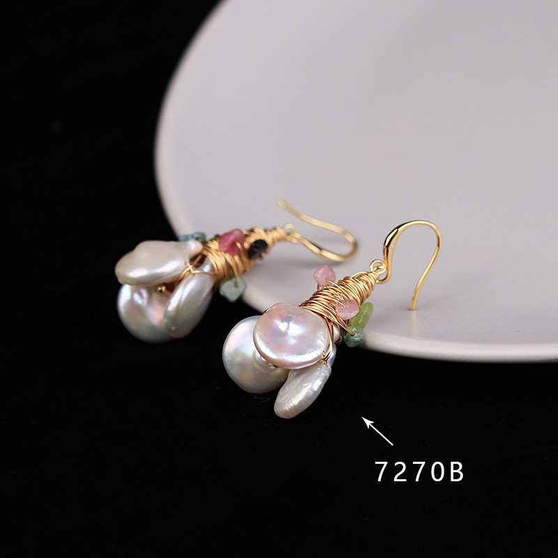 Baroque freshwater pearl color earrings