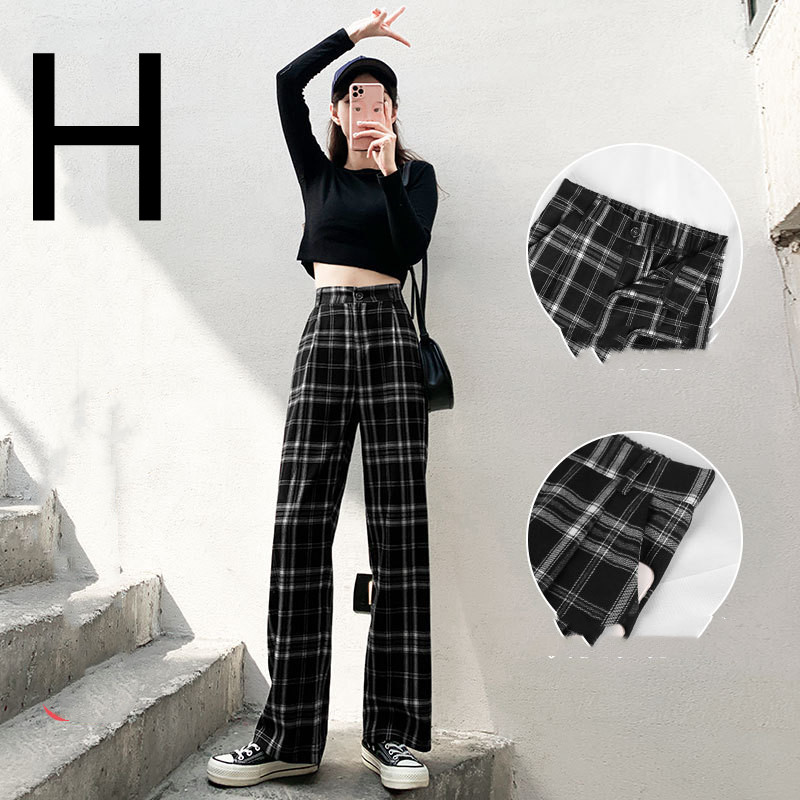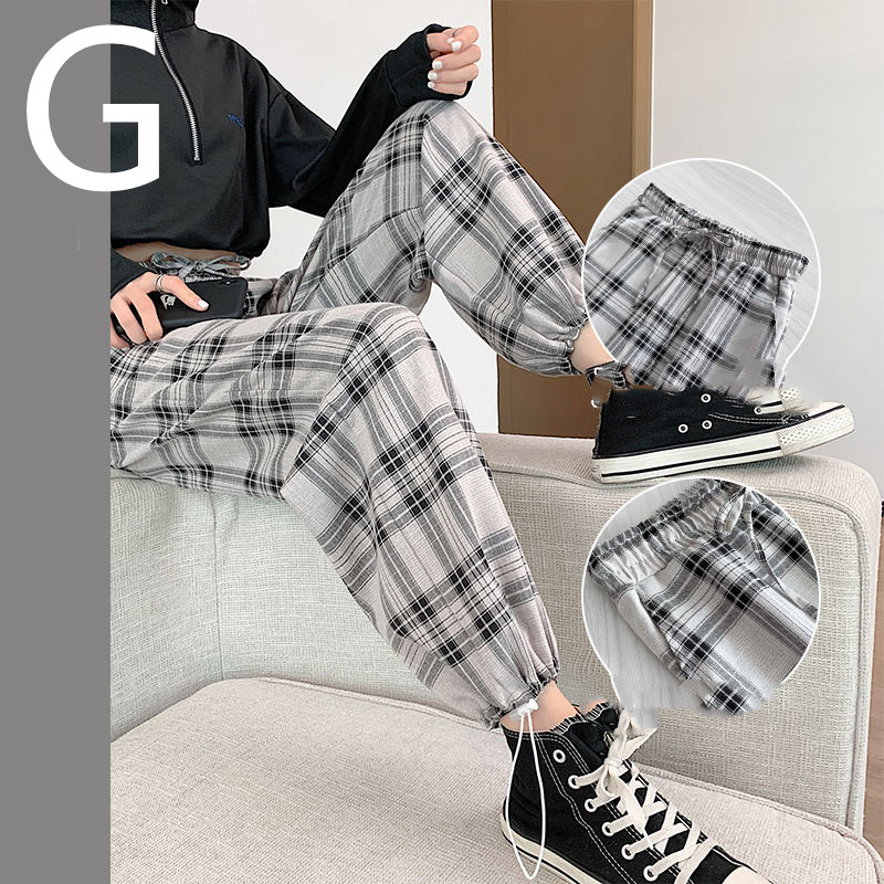 A: Spring and Autumn models-black and white plaid [lace elastic waist] with pockets,