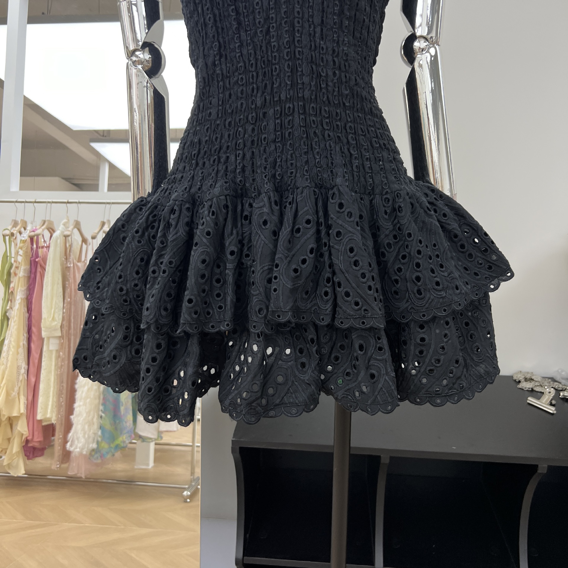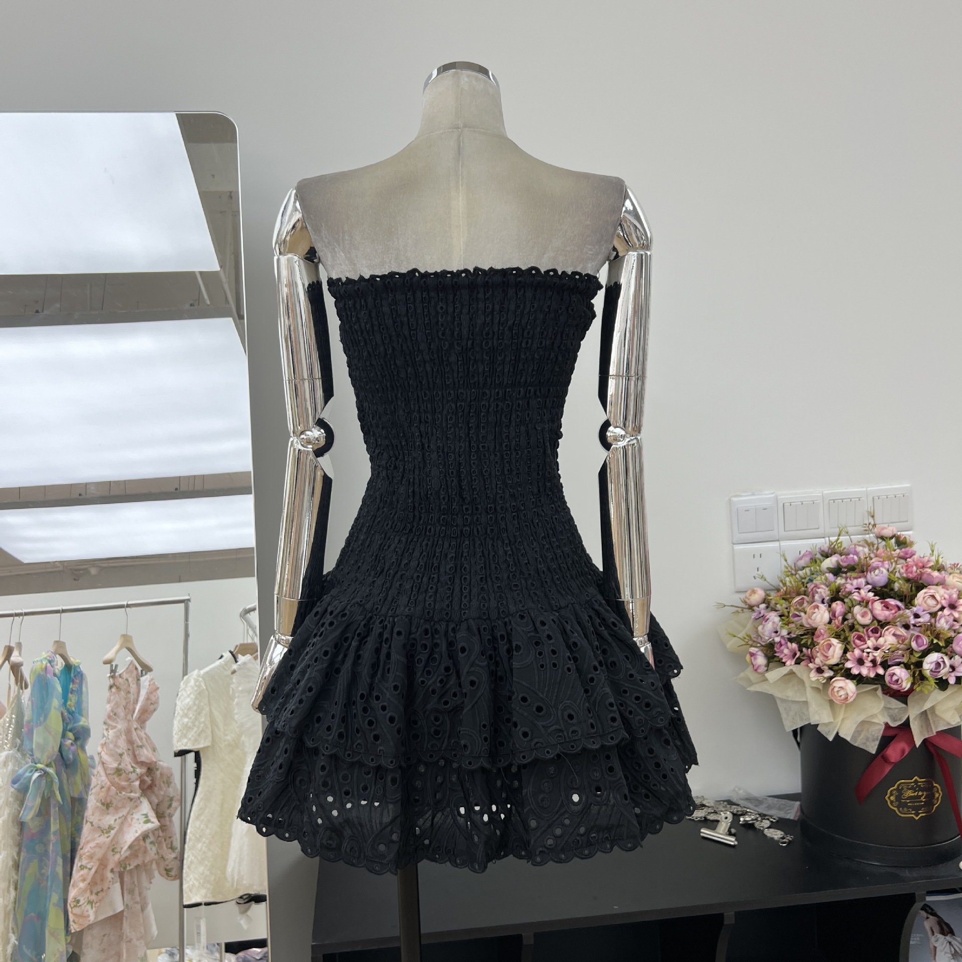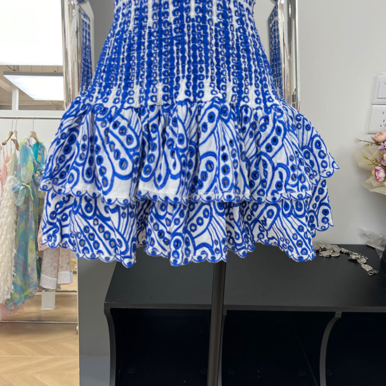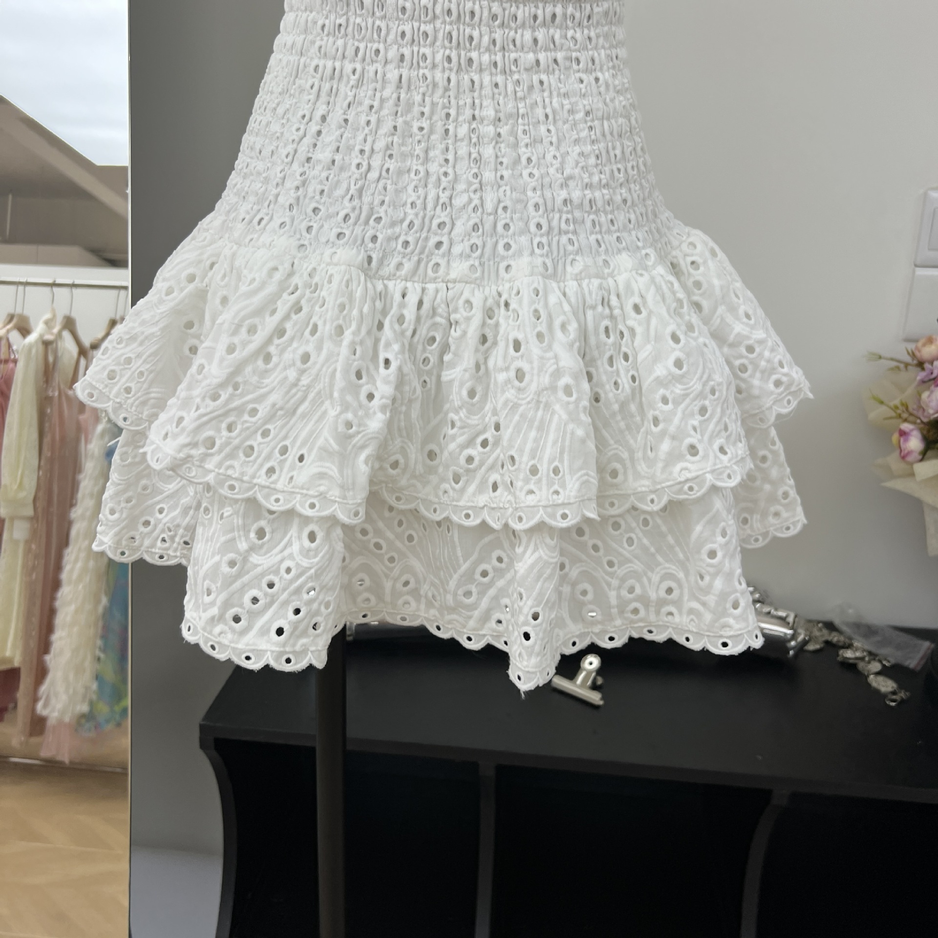 Product information:Color: white, blue, black Waist type: high waist Size: S,M,L Main fabric composition: Cotton Sleeve length: sleeveless Skirt Category: Dress Craft: embroidery/embroidery