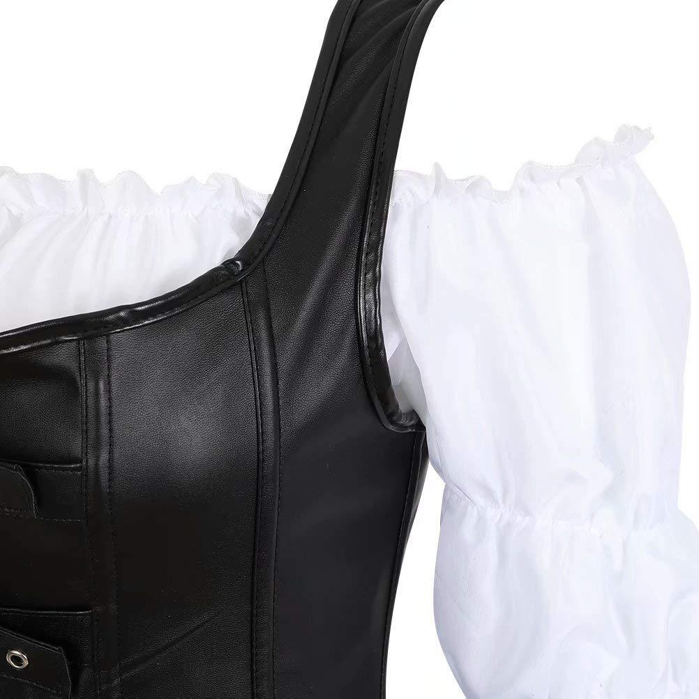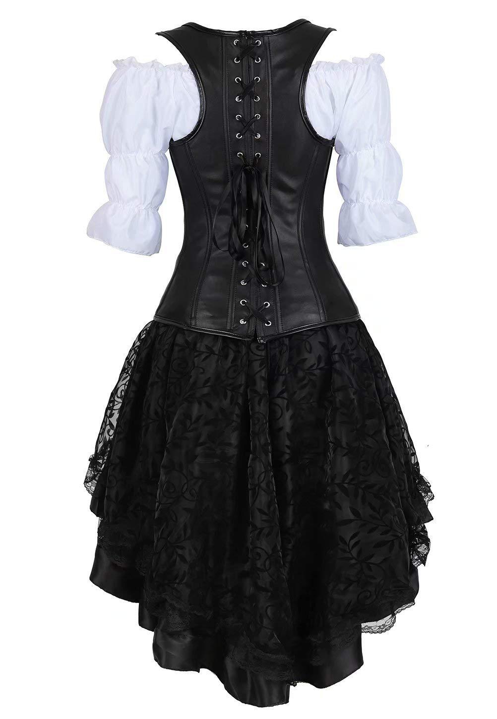 White Shirt + Leather Top + Flocking Skirt*1SET