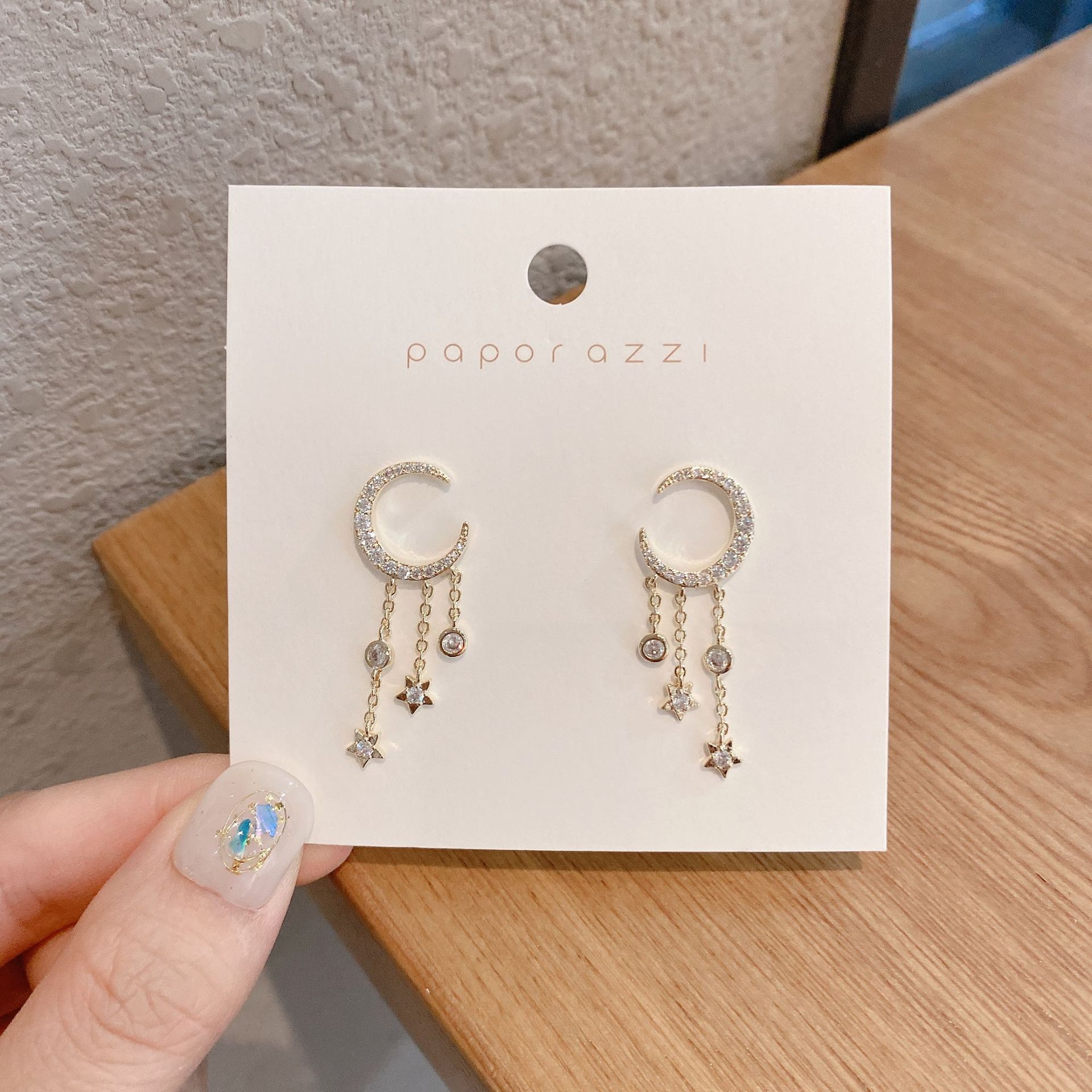 Product information:Material: CopperStyle: Korean style/Korean styleStyle: Women'sShape: StarTreatment process: Gold inlayInlay material: Gold-plated inlaid artificial gems/semi-precious stonesColor: Gold-plated star and moon zircon earrings